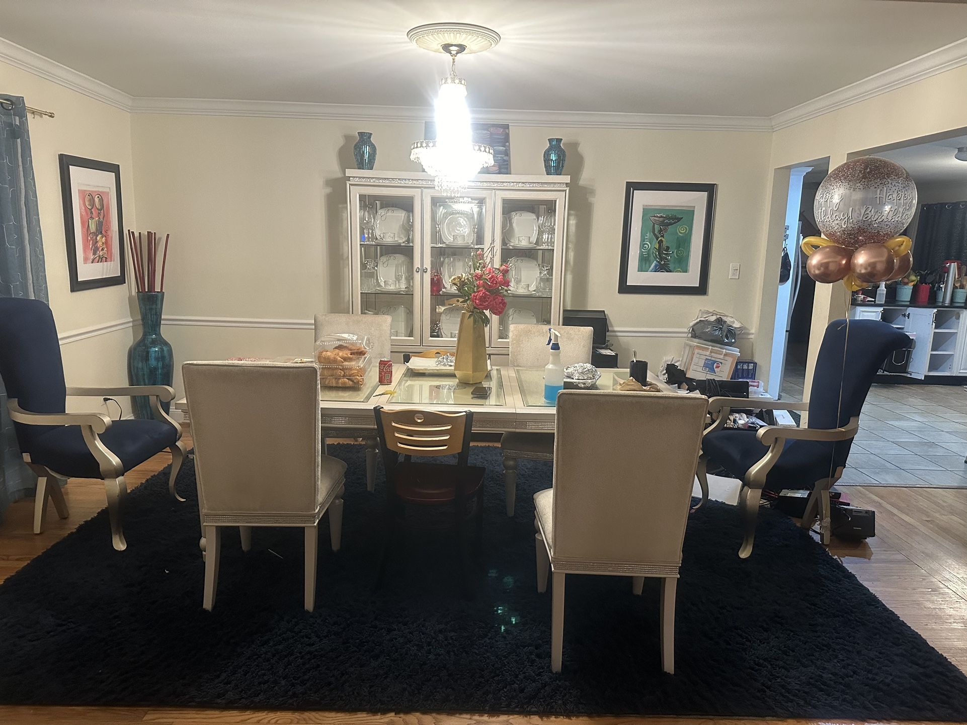 - Dining table with 6 chairs (2 broken but fixable). - china cabinet.