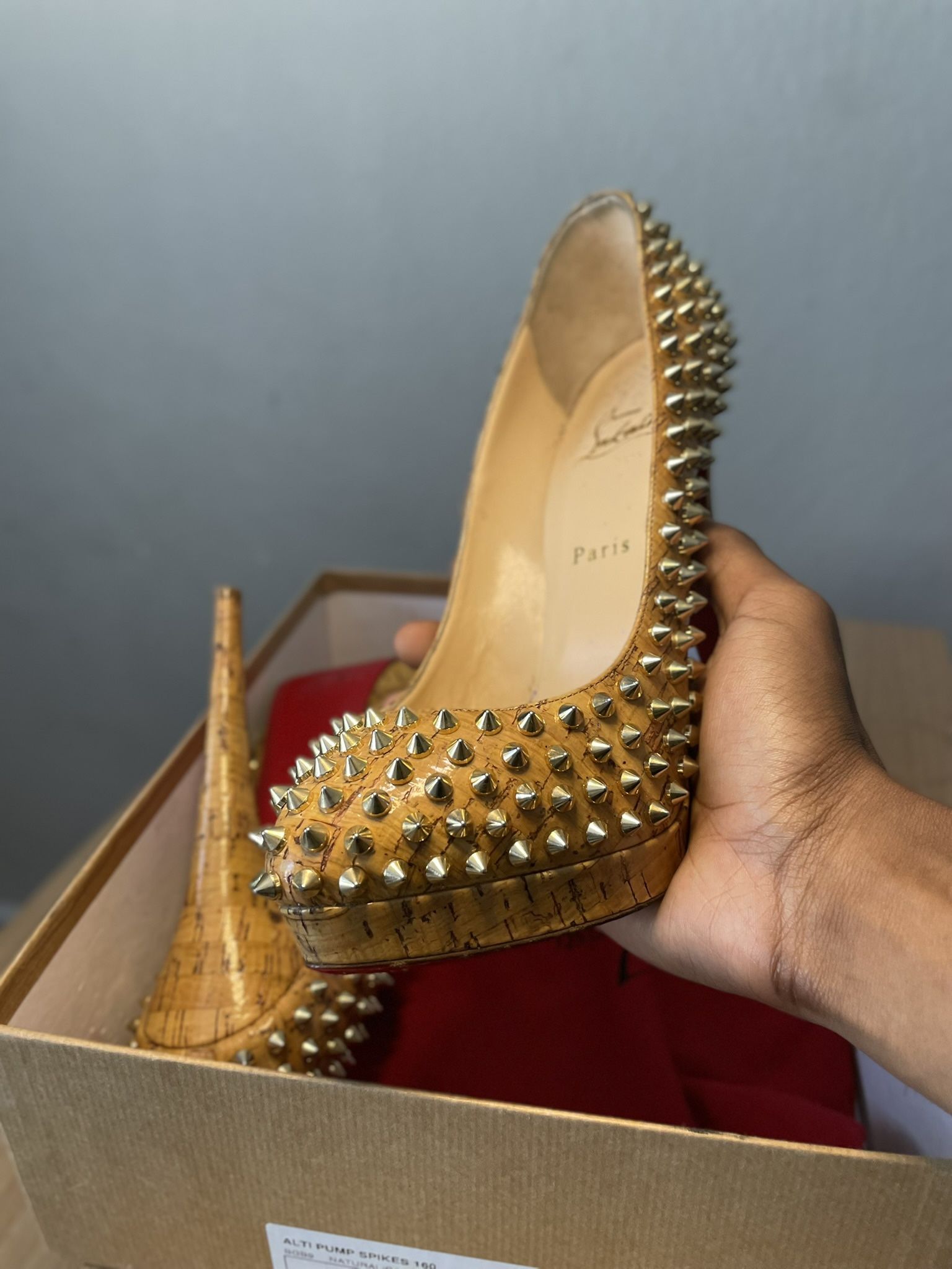Christian Louboutin Cork Alti Spikes 160 Pumps Size 40 Natural/Gold
