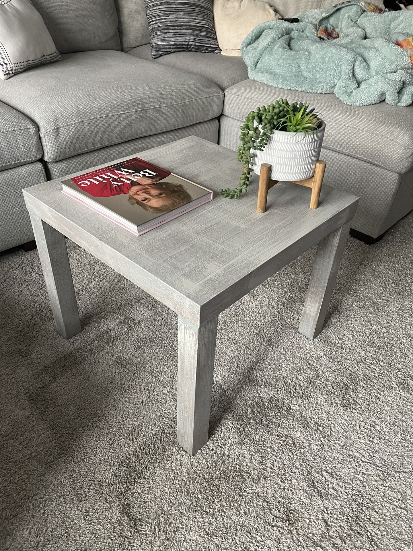 Distressed look square coffee table Measures: 22” x 22” x 18”