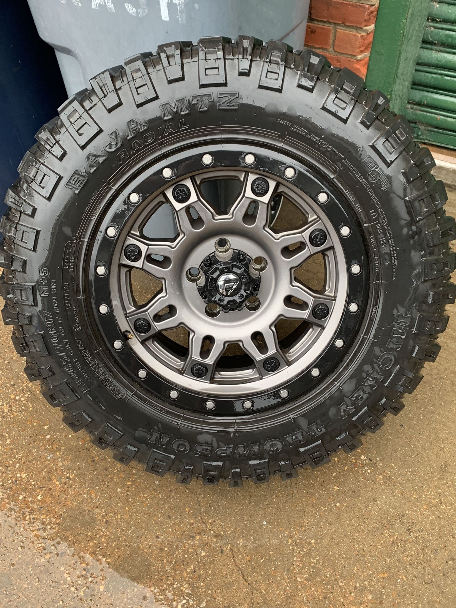 **Selling 1 (single) Tire + Rim ** (not a set of 4) Send me a offer- need this gone! Cash PICK UP ONLY Tire: LT265/70R17 Mickey Thompson Baja MTZ This tire has great tread left Rim specs: Style: Hostage III Size: 18x9 Finish: Gun Metal Matte Backspacing: 5" Offset: 1mm Load Capacity: 2500lbs Bolt Pattern: 5x5" Material: Aluminum Alloy 5 leg hole bolt pattern * I believe it Fits All 2018-2024 Jeep Wrangler JL Models*