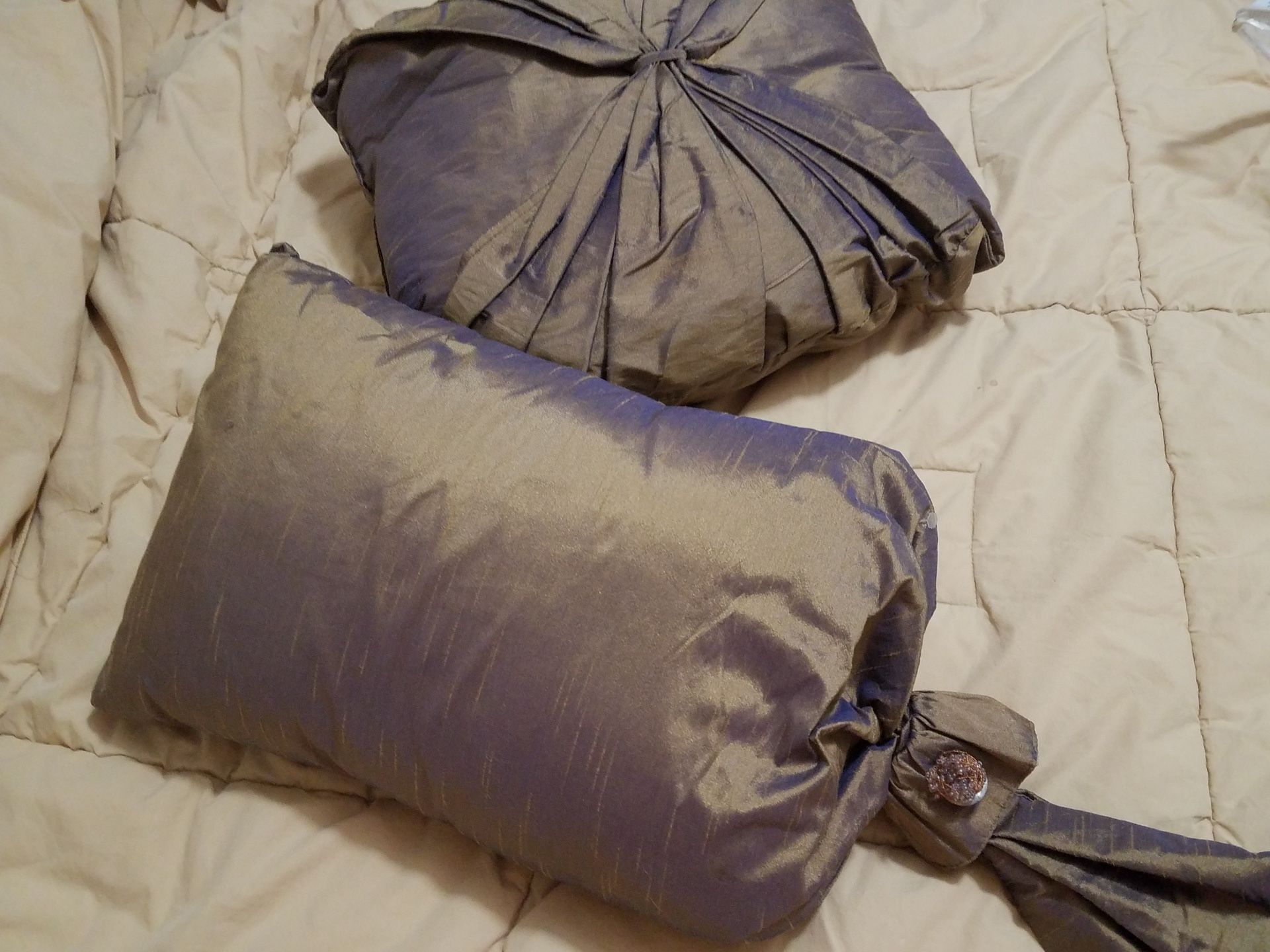 Matching Gold/Purple Pillows *Shiny -- Perfect touch to decorate a room! *Never used *Comes from a smoke free home Price is for the pair. Cash only upon picking up!