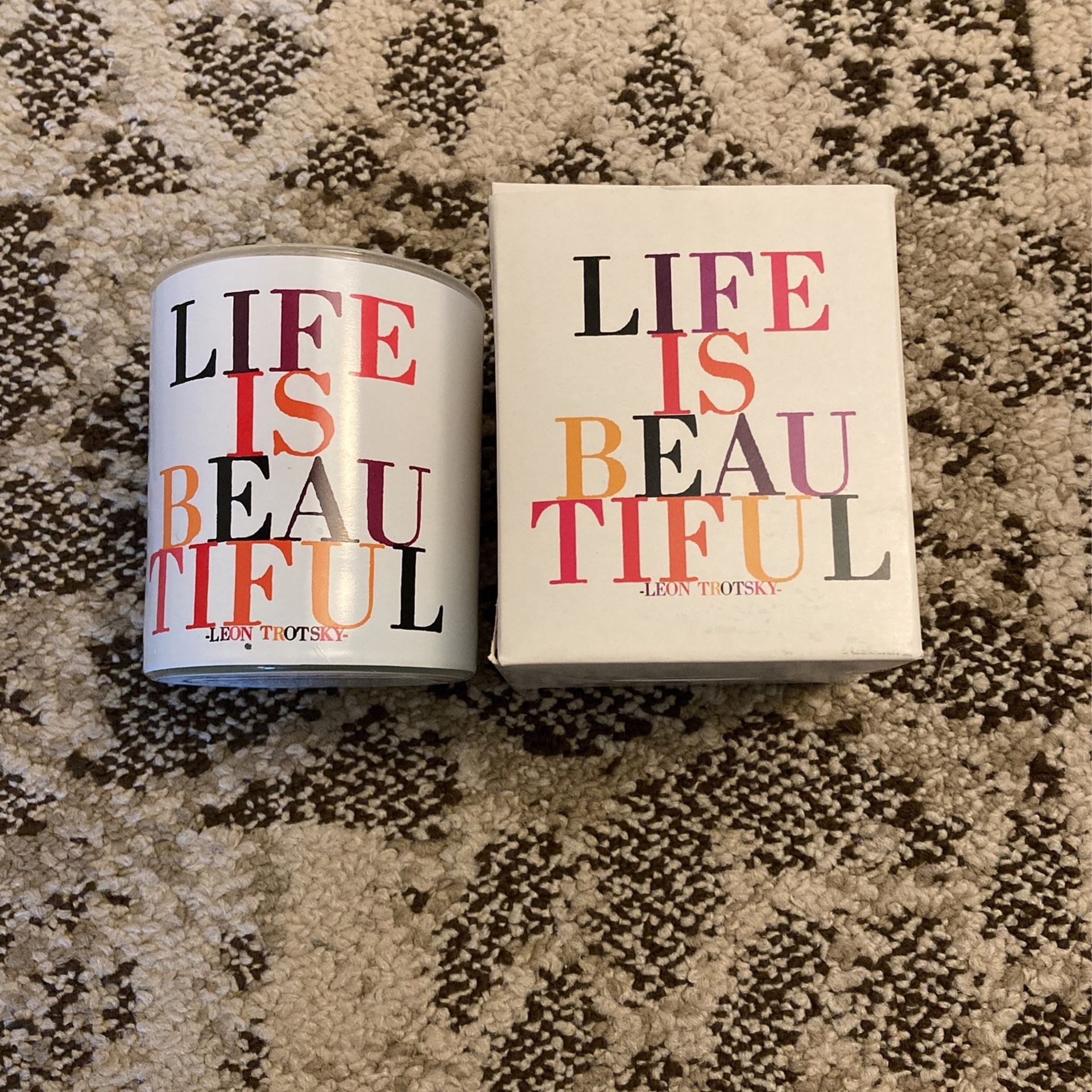 “Life is Beautiful” candle. Wild currant scent. Made of 100% natural palm wax and 100% cotton wick. Originally purchased for $19.95.