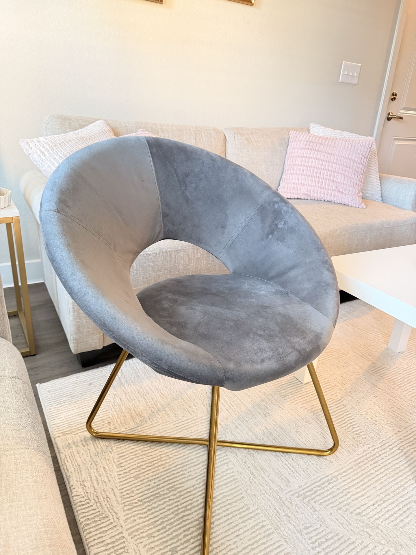 Can be used as a home office chair, decorative living space chair, or whatever you need it to be. Has rarely been used!!