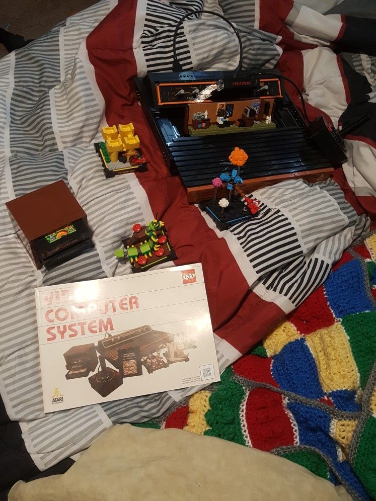A LEGO set based on the Atari 2600 Video Computer System. Front panel slides out to reveal an 80s bedroom diorama. Includes 2,532 pieces, 1 minifigure, and instructions.