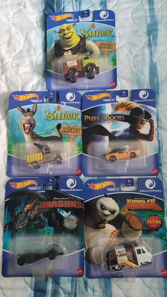 Entire Dreamworks Hot Wheel 5 Character Cars Lot