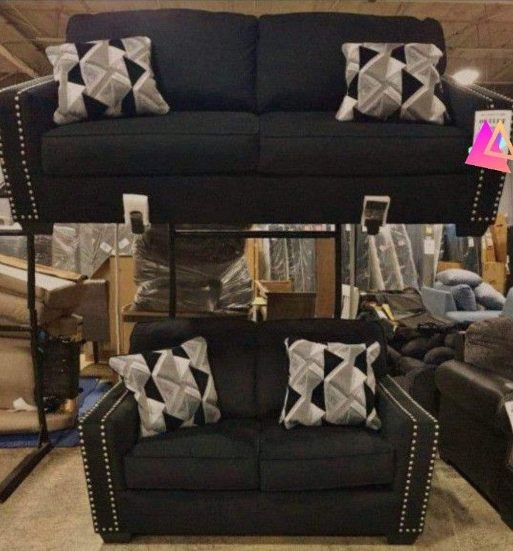 Dark Color Modern Onyx Sofa And Loveseat Set |39$ Down Payment With Financing| Living Room Furniture @ Fastest Delivery 🚚