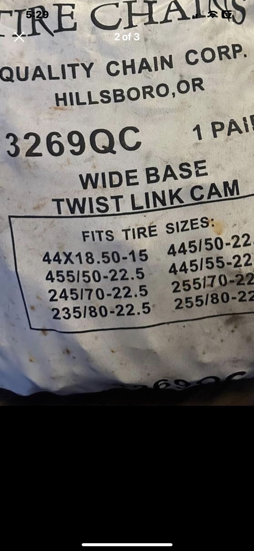 New tire chains wide base twist links cam two pair 255/70/22.5 ……just in time for winter be prepared