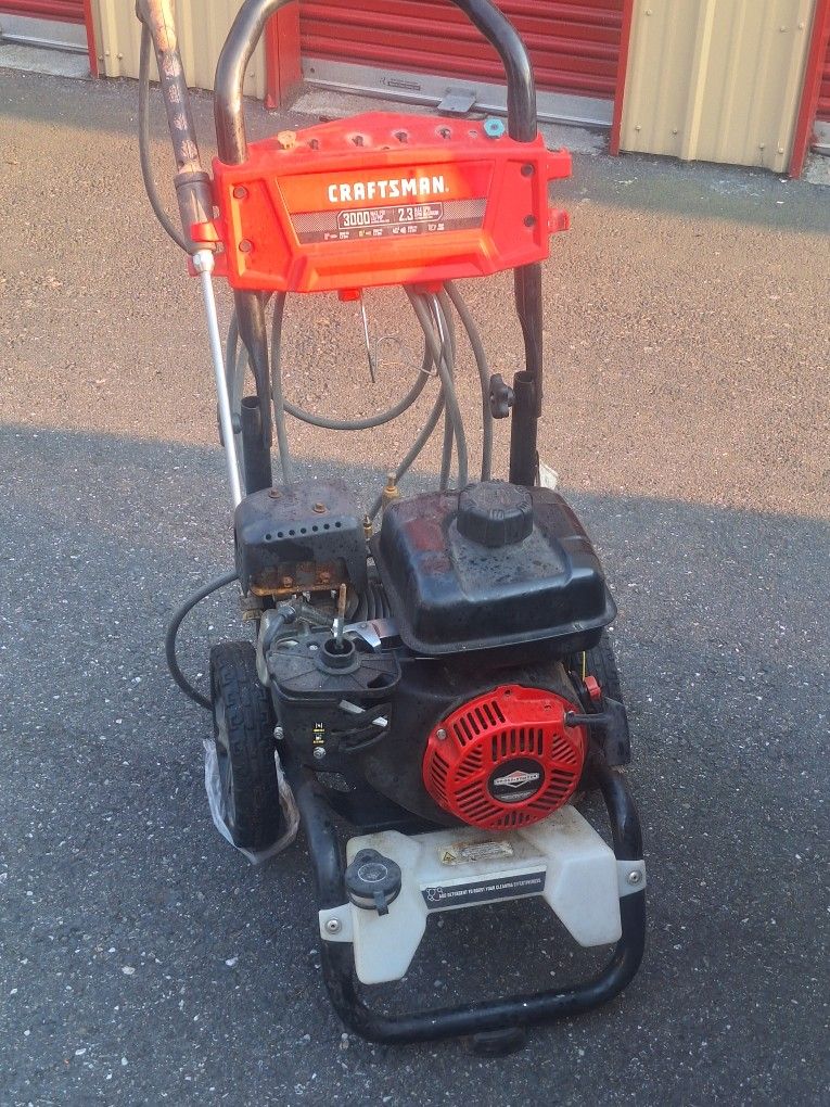 Pressure washer 3000psi . Briggs Stratton engine runs great works great. Missing air filter cover. Sells around $350 new asking less than half of that at $125.