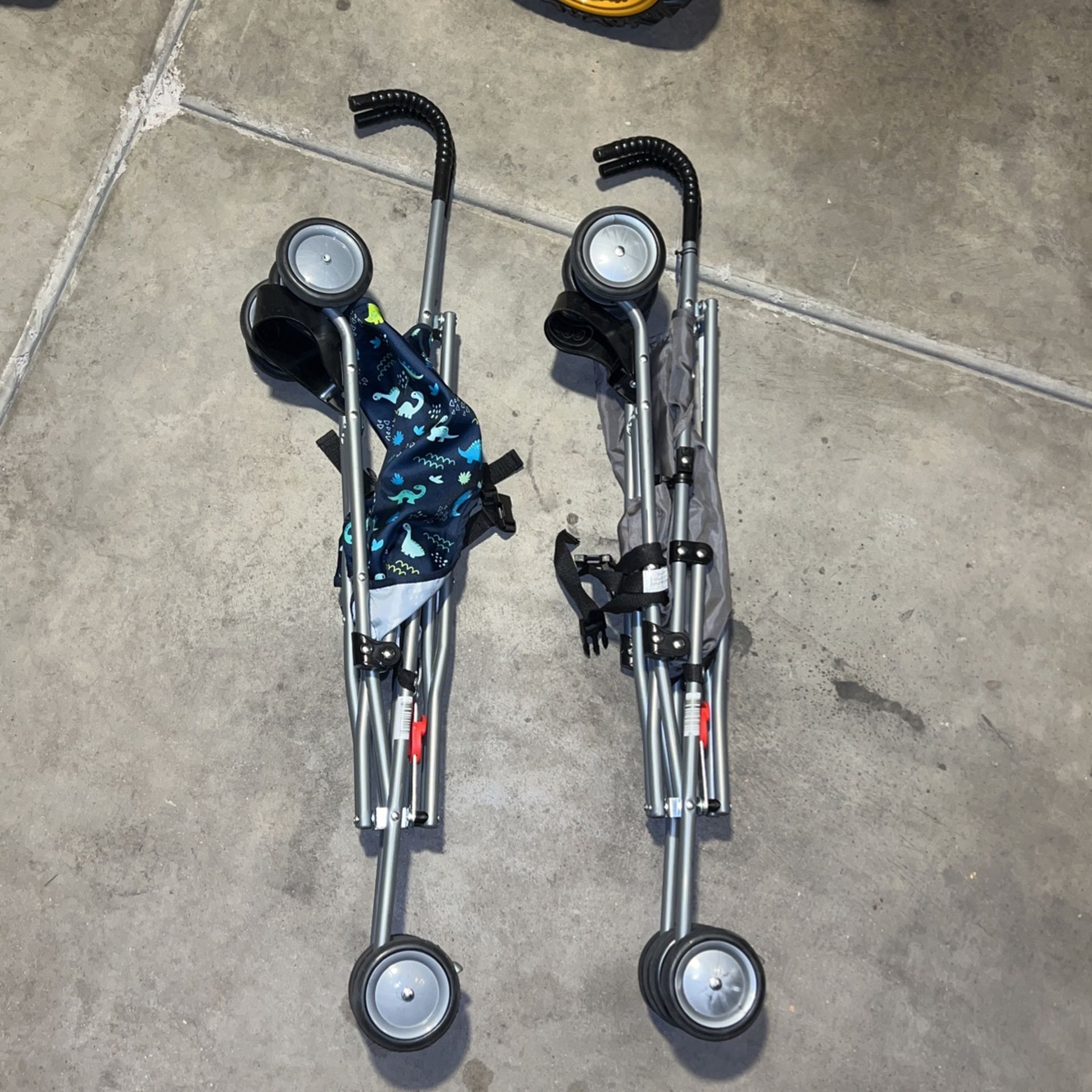 I have two strollers for sale One is a Dino stroller that doesn’t have a shade cover The other is a shark stroller that has a shade cover Asking $25 for both I can sell both or each one. Make me an offer