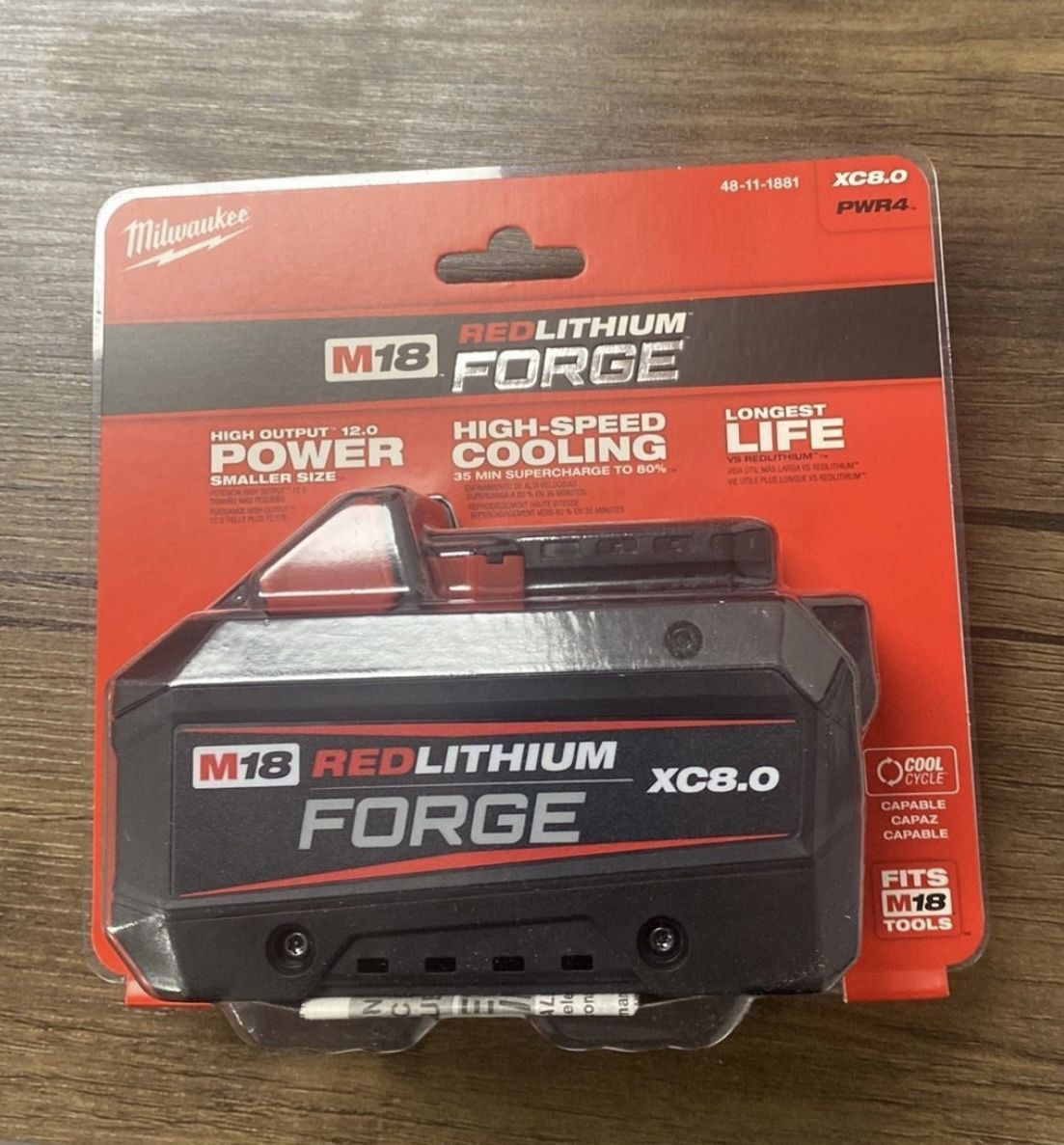 Brand New! This retails for $229 plus tax The M18 REDLITHIUM FORGE XC8.0 Battery Pack delivers HIGH OUTPUT 12.0 power in a smaller size, high-speed cooling for less downtime in high-demand applications, 35-minute supercharge to 80%, and the longest life vs REDLITHIUM batteries. REDLITHIUM FORGE are Milwaukee's most powerful, fastest charging, and longest life batteries. The REDLTIHIUM FORGE XC8.0 delivers 8 amp hours of runtime, but with the same power as the M18 REDLITHIUM HIGH OUTPUT HD12.0 in a smaller size and lighter weight design. The M18 REDLITHIUM FORGE XC8.0 is COOL-CYCLE capable. COOL-CYCLE Active Cooling System provides high-speed cooling for less downtime. Patented ingress coating provides increased protection to maximize active cooling through an upgraded venting design.
