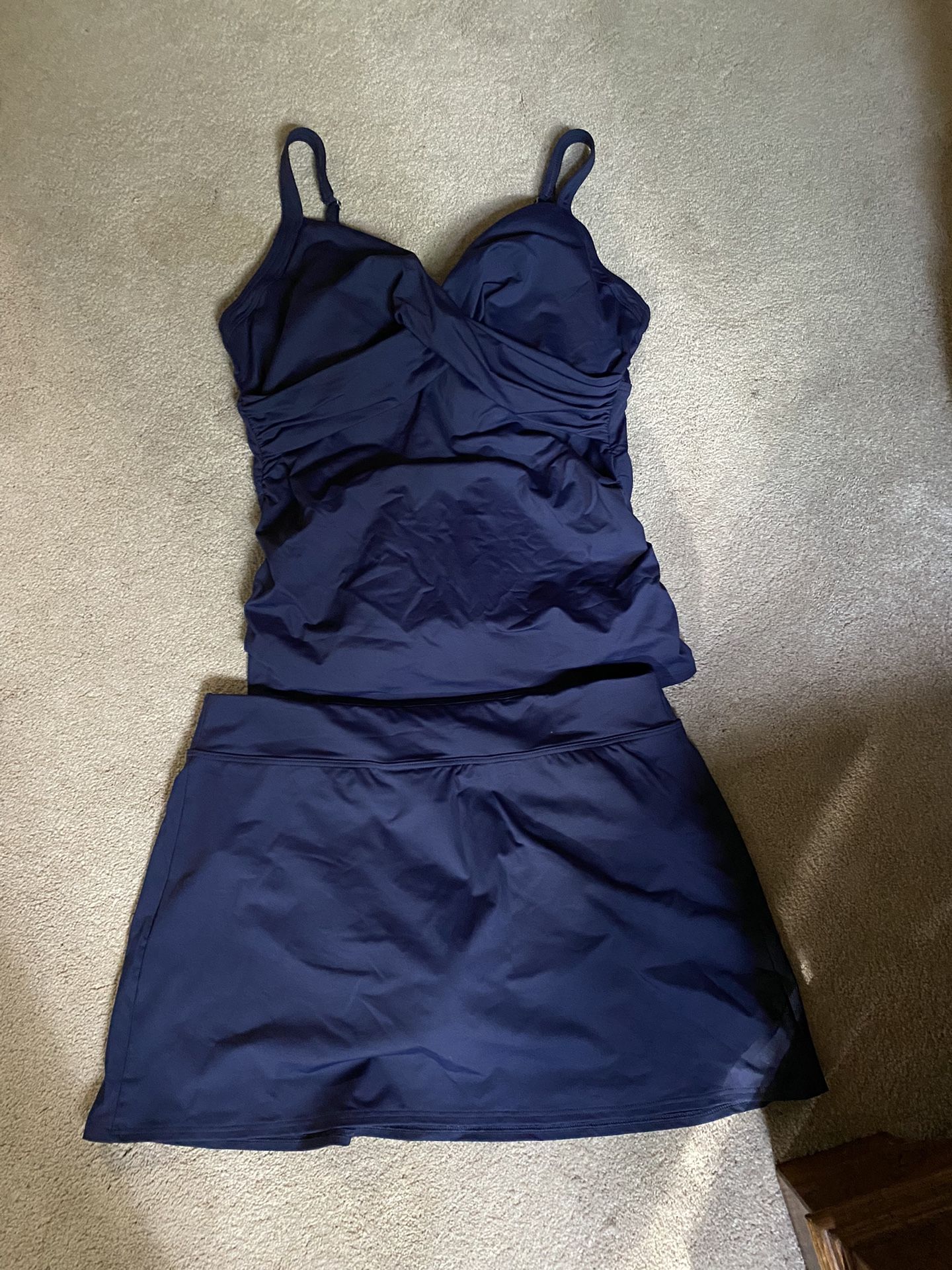 Worn once in pool. Like new condition. My daughter lost weight and it no longer fits her. Cost over $80 together.