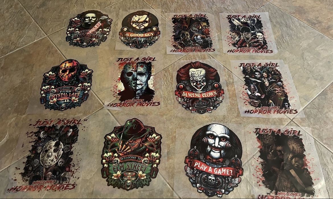 New Horror Movie Iron Ons, Large. 12 Pack Variety All the best characters Just a girl who loves horror movies Price is firm Pick up Rancho Bernardo 92128 Cash only