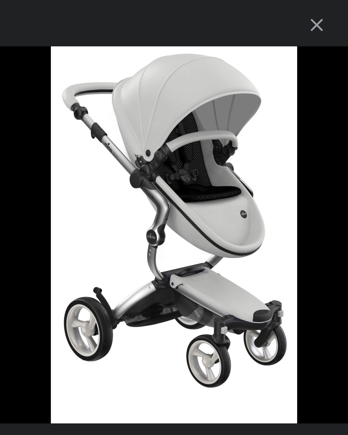 Mima xari stroller in the color white, comes with the starter pack, rain cover, and travel bag. Comes with all attachments to be a bassinet, and chair. Such an amazing stroller barely used because my son grew out of it so darn quick. $250