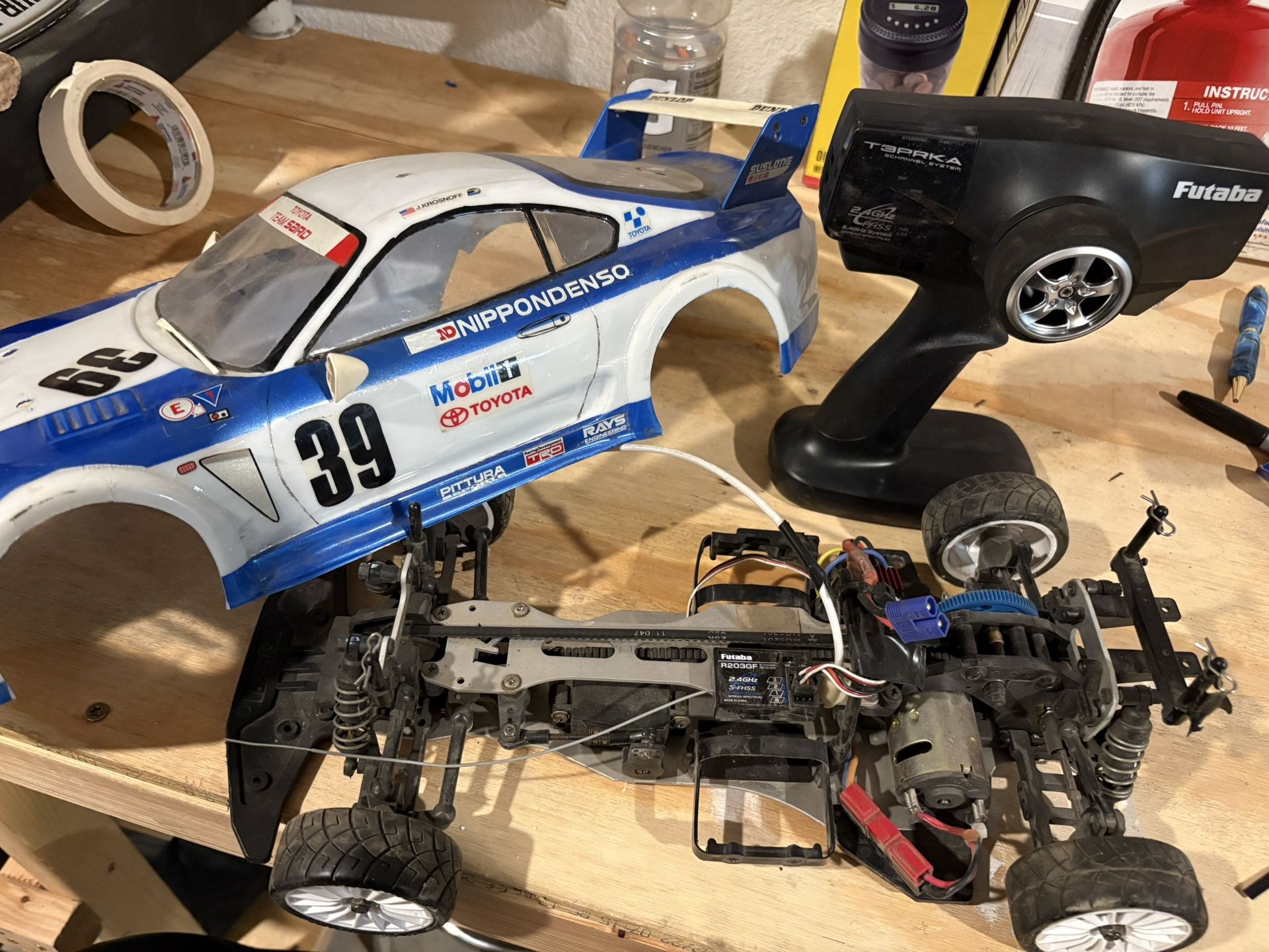 Comes with newer tires installed and new Futuba receiver and transmitter. No battery