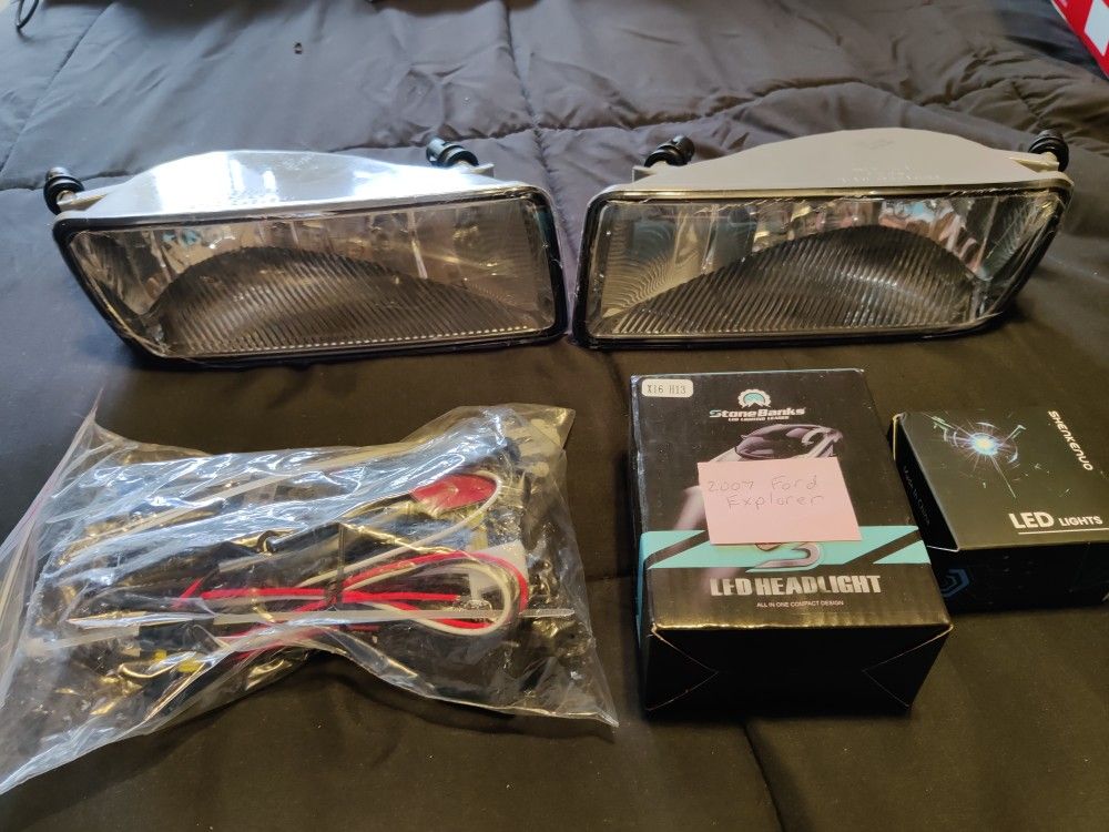 Bundle Ford Explorer 2006-2010 Fog Light Bezel With Original Bulbs, Included With H13 Led Headlight Bulbs And Led Fog Lights Bulbs