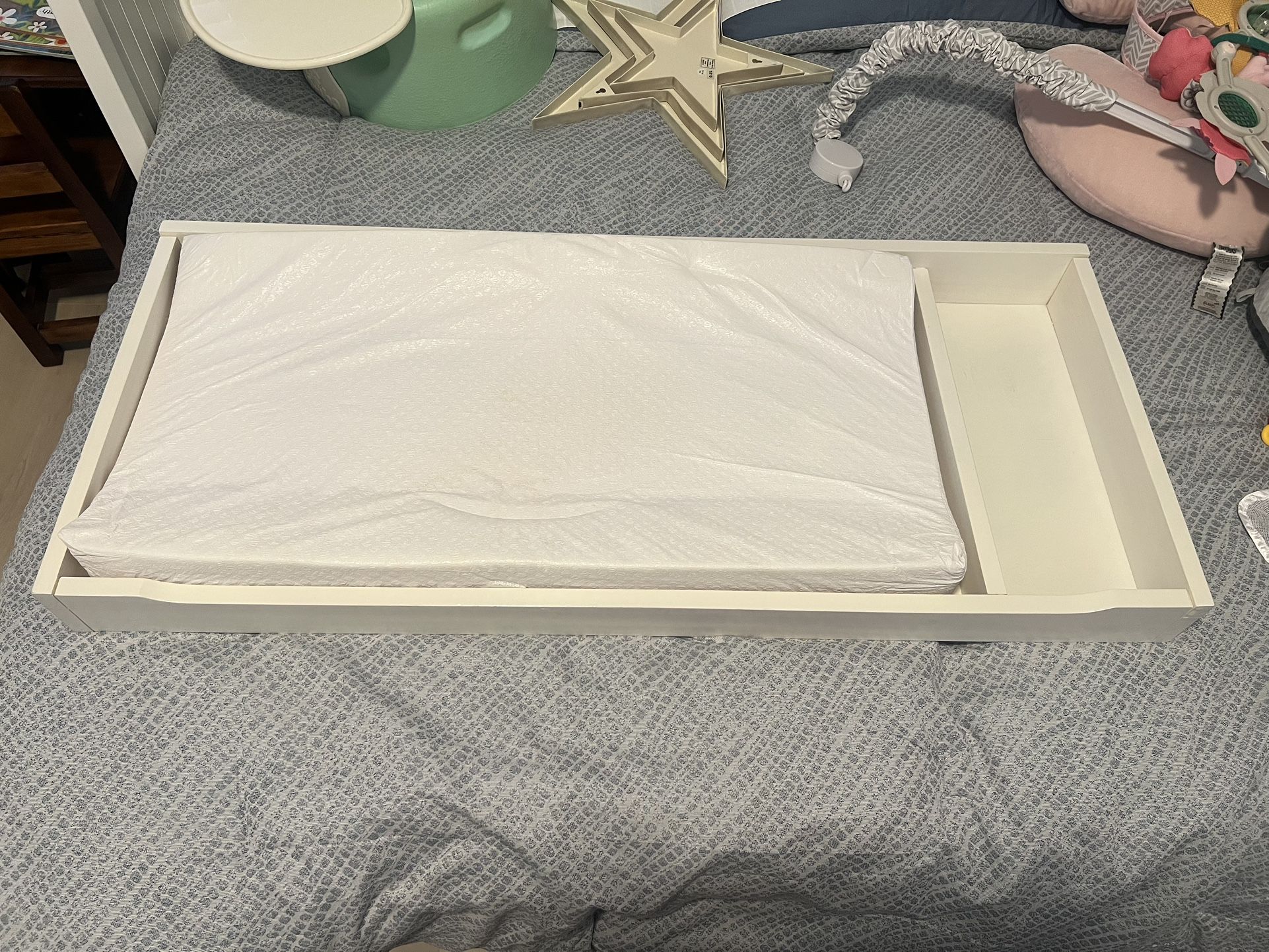 Baby Changing Tray With Changing Pad And Two Covers. Changing pad is waterproof and wipeable and has a belt. Great condition. $60 OBO
