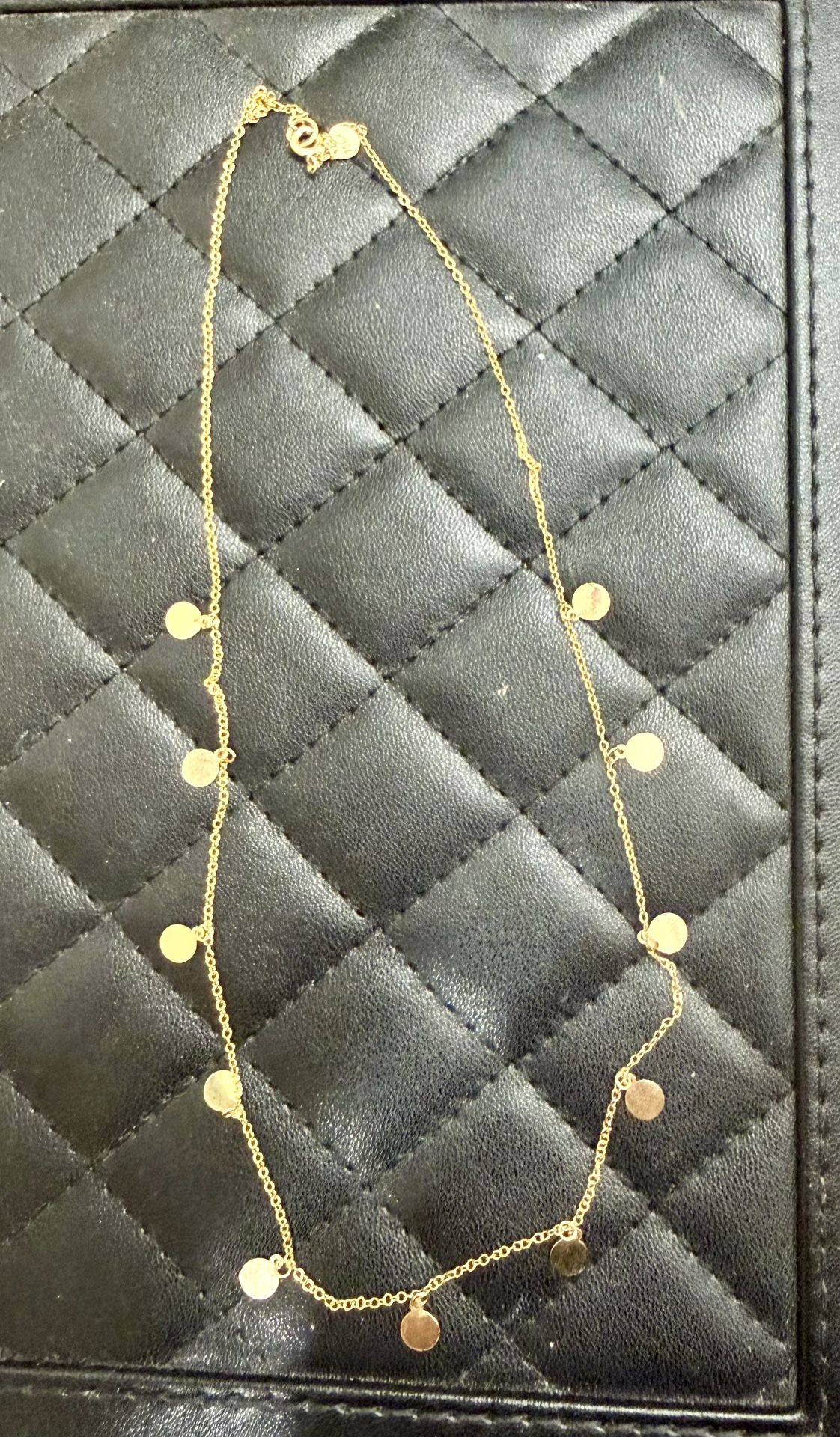 Brand new 18k solid gold stamped 750 for italian gold .. very nice and shiny and great by itself or layering with other necklaces. Very practical and sturdy for everyday use.