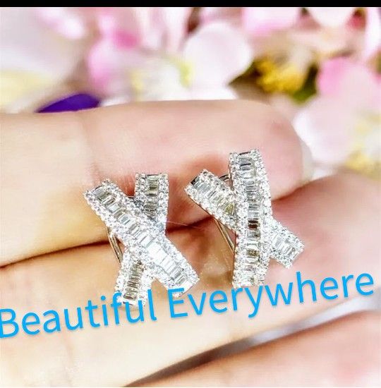 Sterling Sliver Cross Earrings Princess Cut, White Topaz CZ Diamond Clip WOMEN 925 STERLING SILVER ICY BLING CUBIC ZIRCONIA *Real Sliver,Will Not Fade.Very good Quality Beautiful Earrings Is Very Nice Not Made Of Cheap CZ,It's Shiny And Ice looking,Man made AAA Standard Simulated Diamonds = Cubic Zirconia (CZ) This Cubic Zirconia ring reflects light like a real diamond. It has superior fire & brilliance giving it the appearance of real earth mined diamonds! • Material: 925 Sterling Silver • Ring Color: Silver • Ring Stone Color: Clear
