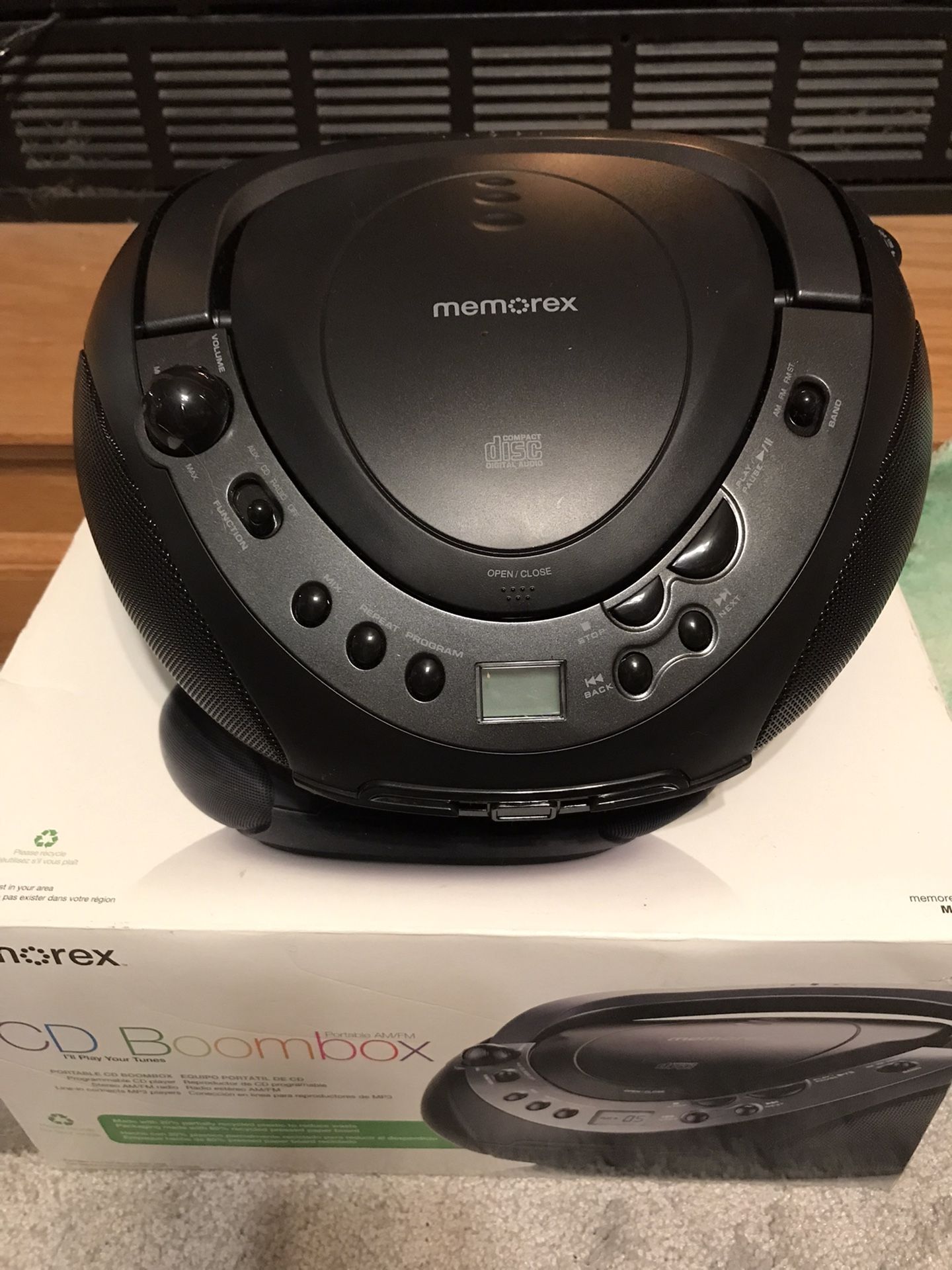 Memorex portable CD boombox. Used only once. Comes with original box. $20.00. Can meet in LaPorte, Indiana on east side of town.