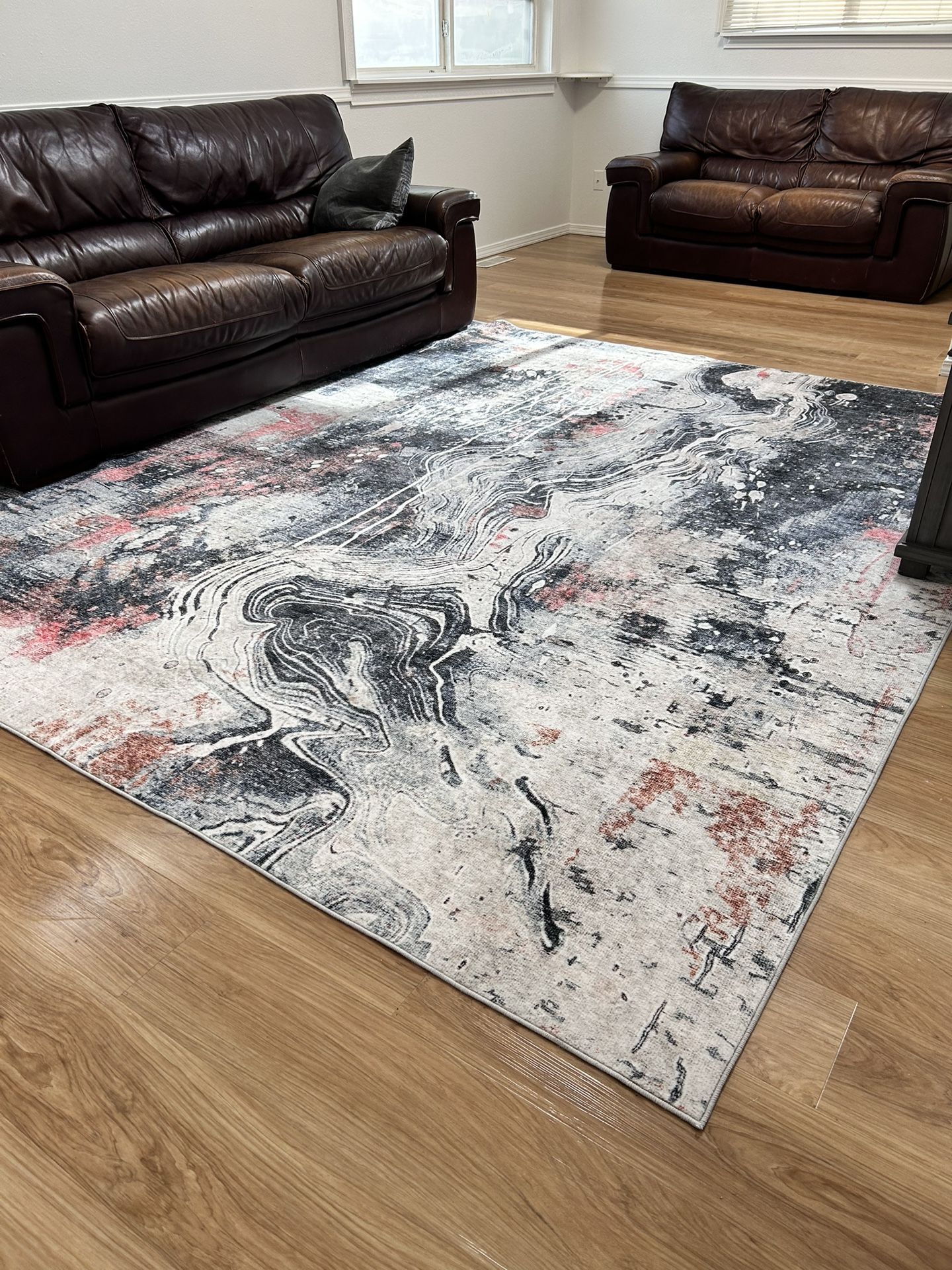 Great condition! Used for only about 1.5 months. GarveeHome 8x10 Red & Black Abstract Rug – soft, non-slip, machine washable, and foldable. No stains or damage. Selling due to a move.