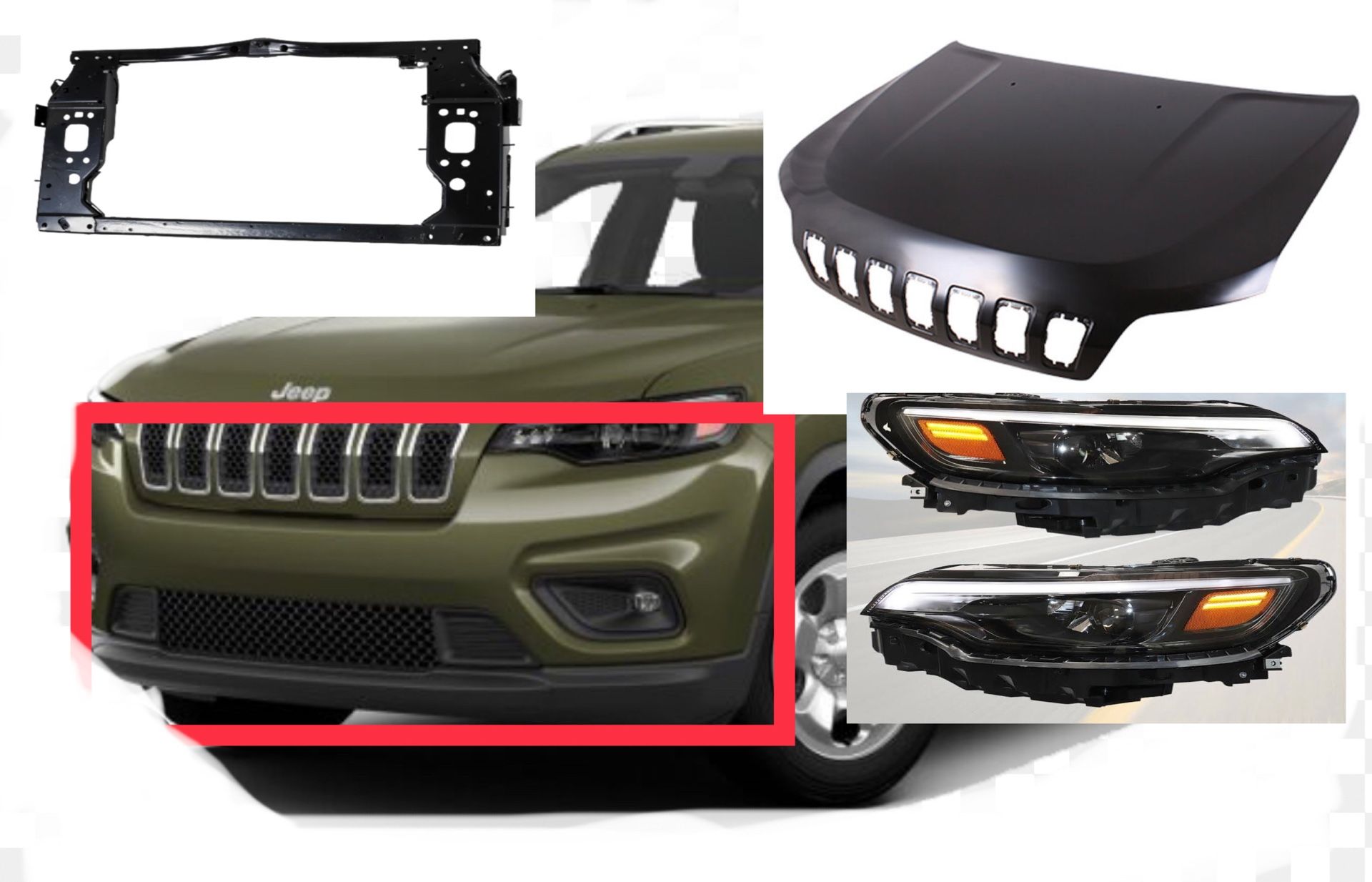 Jeep Cherokee 19-22 Front End ( Radiator Support + Complete front bumper + Headlights + Aluminum Hood+ Rebar+ Grills insert available At: Wadi Auto Inc 5105 Fuqua Gardens View Rd, Suite B , Houston 77045 Monday to Friday 9am to 5pm (contact info removed)
