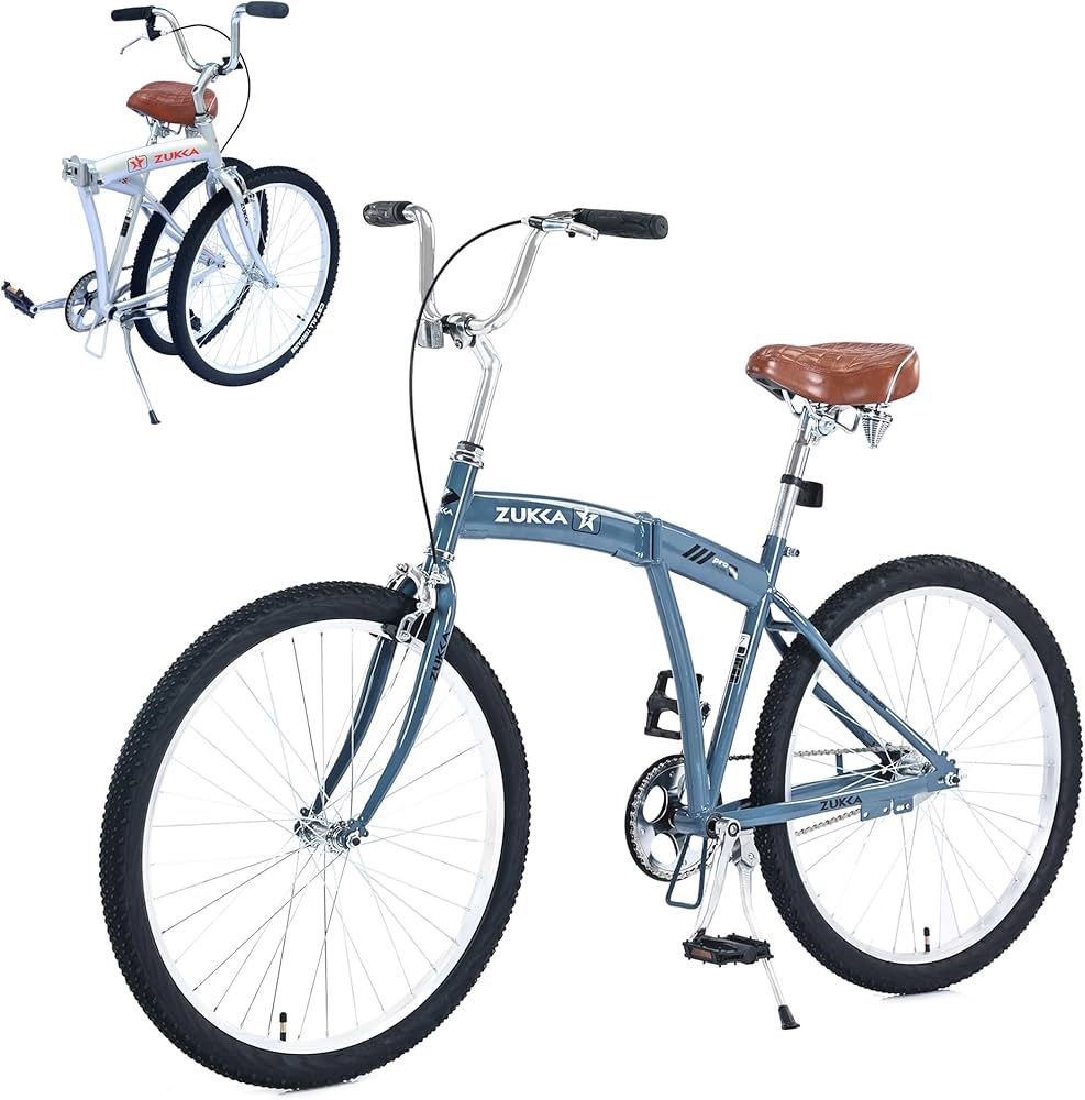 26 in. Beach Cruiser Folding Bicycles With Single Speed and Carbon Steel Frame for Men and Women's in Blue [ Open Box]