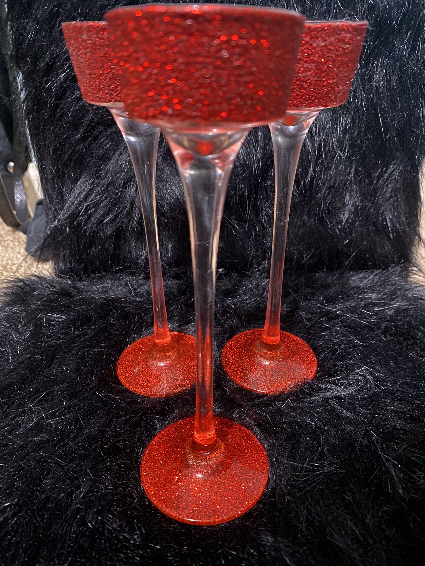 Standing yea light holders with red glitter top and bottoms set of 3.