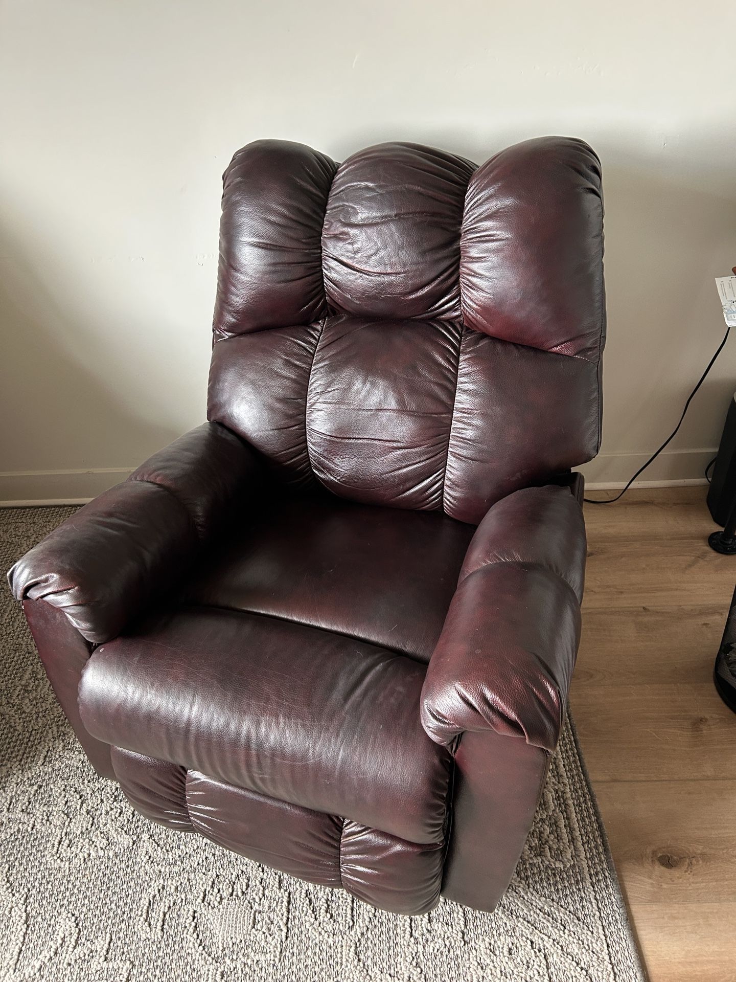 Leather recliner that rocks.