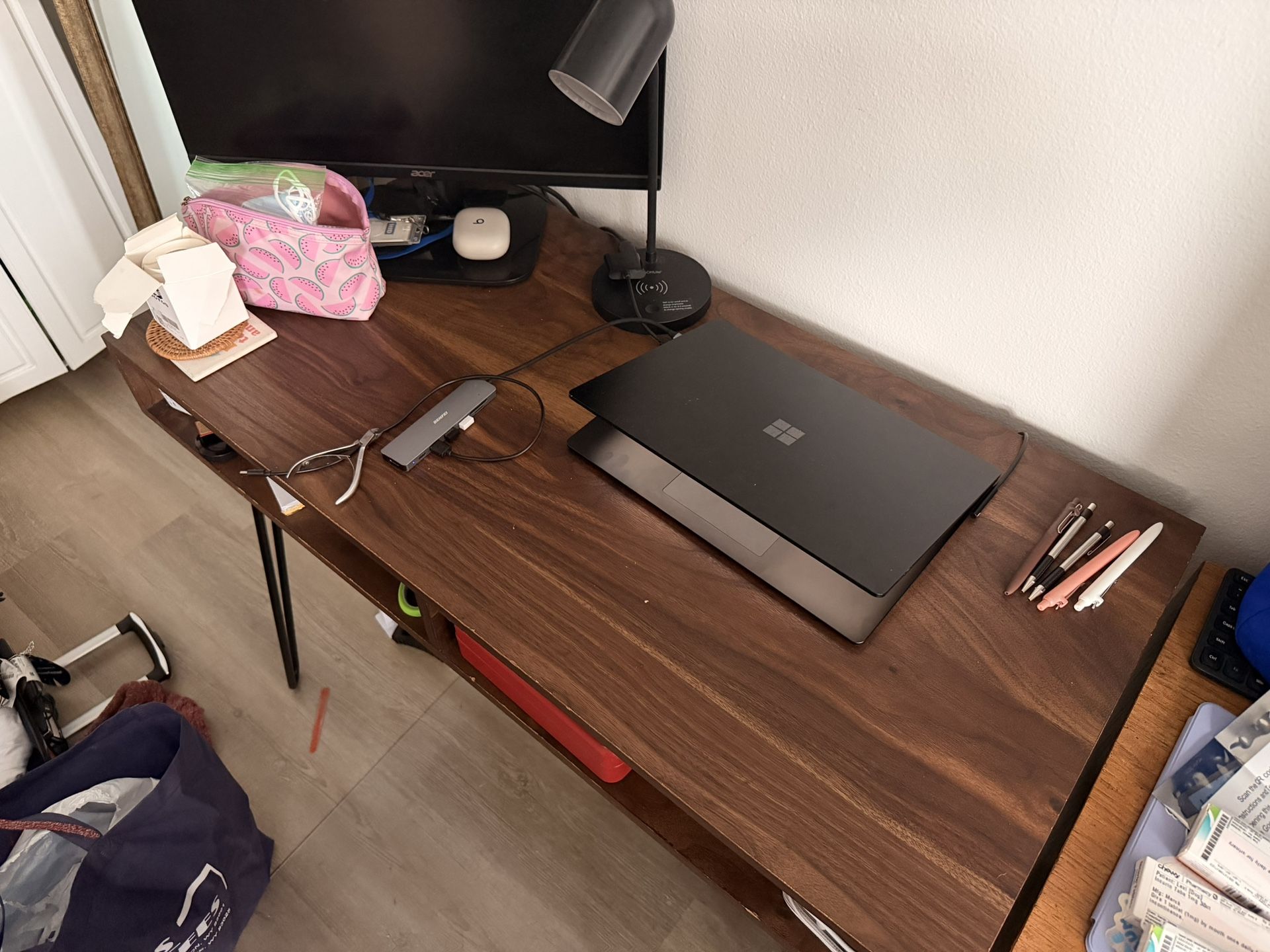 Few minor scratches on edges Specs: Desk - 40 in L 20 in W 30.5 in H Pick up, it’s light