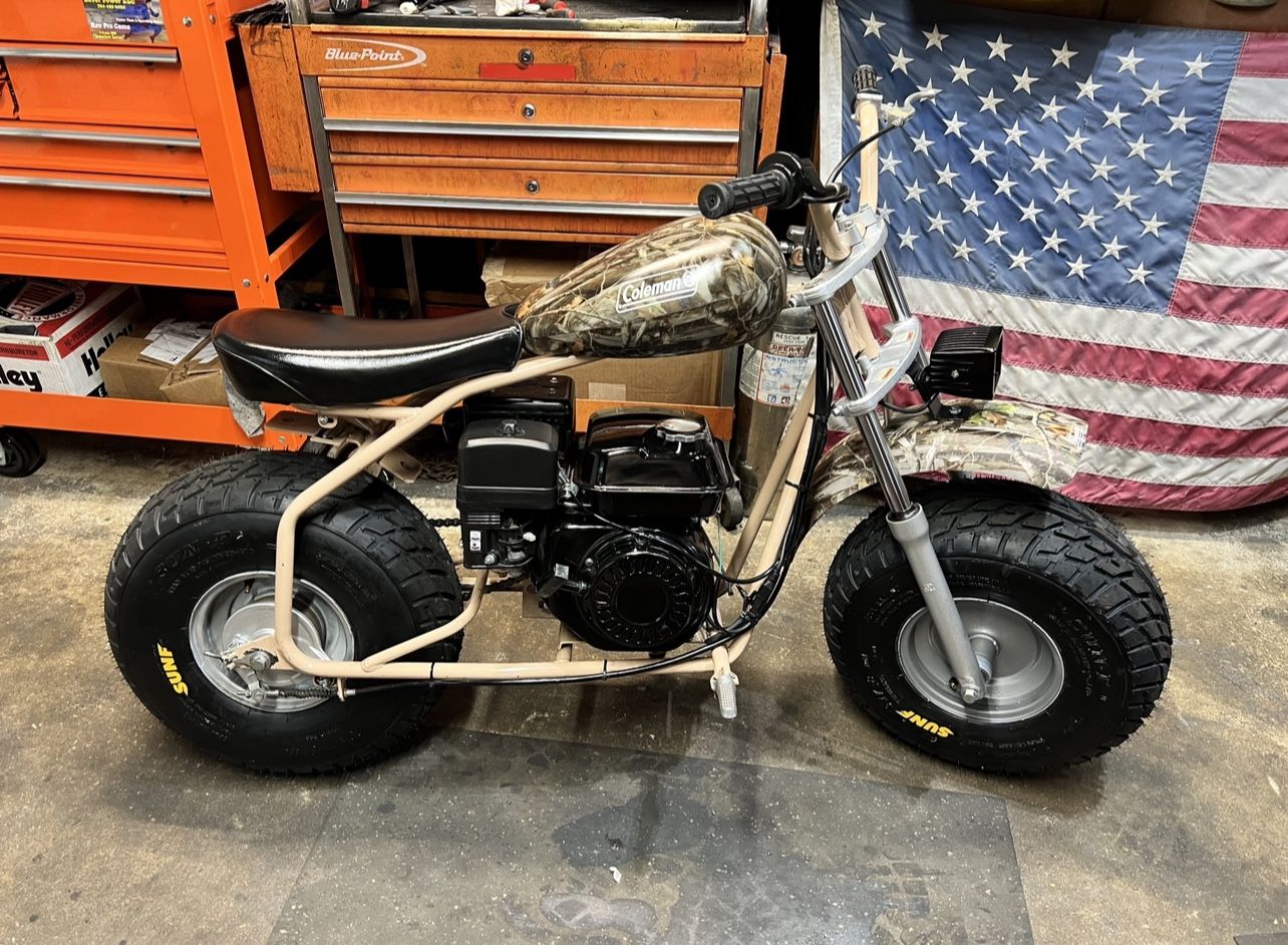 Coleman 2021 frame Upgrade sleeper torq engine 1.3 ratio rocker Triple jeting 196cc - stroked to 218 cc Racing spark plug New led light New tires Get urs upgraded today Nice street machine that has no problem keeping up with traffic I’m also off rear brake light We can use preadtor engine or wat came with ur bike as long as it is ohv engine clone stlye