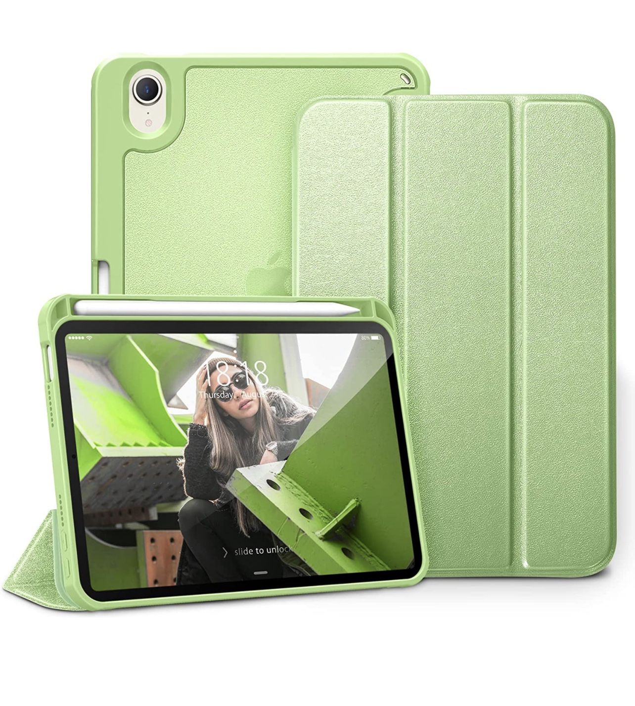 DTTO iPad Mini 6 Case 2021 with Pencil Holder, Slim Smart Trifold Stand Front Cover [Auto Sleep/Wake] with Shockproof Hard PC Matte Back Cover for Apple iPad Mini 6th Generation 8.3 Inch, Light Green Compatible Devices: Apple iPad Mini 6th Generation (2021 Model) 8.3" (model number: A2567/A2568/A2569) Shell Type: Hard Form Factor: Case Brand: DTTO Color: Light Green ⭐ Compatibility - Designed for the Apple iPad Mini 6th Generation 2021(Model: A2567/A2568/A2569) Released Tablet. Not Compatible with Any Other iPad Model. ⭐ Built-in Apple Pencil Holder - Support Pen Storage and 2nd Gen Apple Pencil Charging Features(Apple Pencil is Not Included), Convenient to Place and Easy to Carry and Use. ⭐ Magnetic Smart Cover - Microfiber Lining Protects iPad Screen and Quick response Auto Wake-up/Sleep Function. (Energy-saving). ⭐ Enhanced Full Protection - Enhanced Edge Protection and Hard PC Matte Back Cover; Avoid Fingerprints, Dust, Scratches, Shockproof and Fall Damage, Effectively Protect your iPad Mini 6.