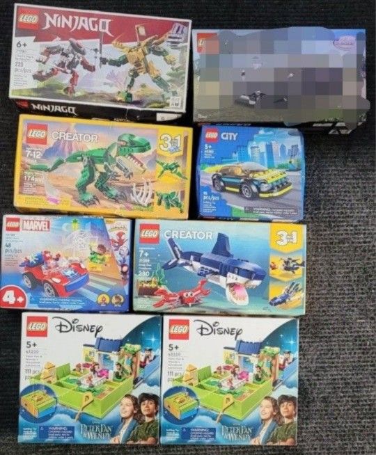 Brand new lego sets Price is $10.00 each Ninjago, Speed champions Mighty Dinosaur, spiderman car and doc ock Deep sea creatures 2 Peter pan and Wendy story book adventure Cash only no trades of any kind Pick up in se Portland near 130th and powell