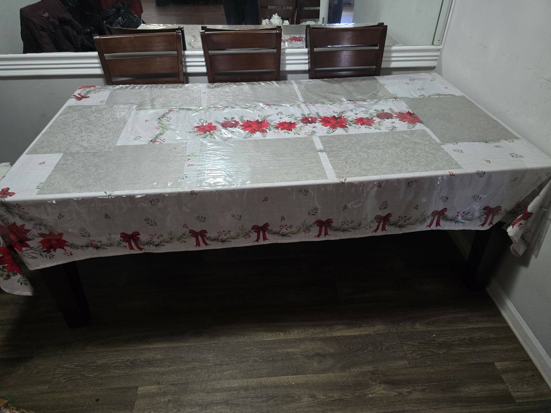 100% wood , Solid table you can reduce it and make it into a table of 6 or keep it for 8 seats , 8 seats included