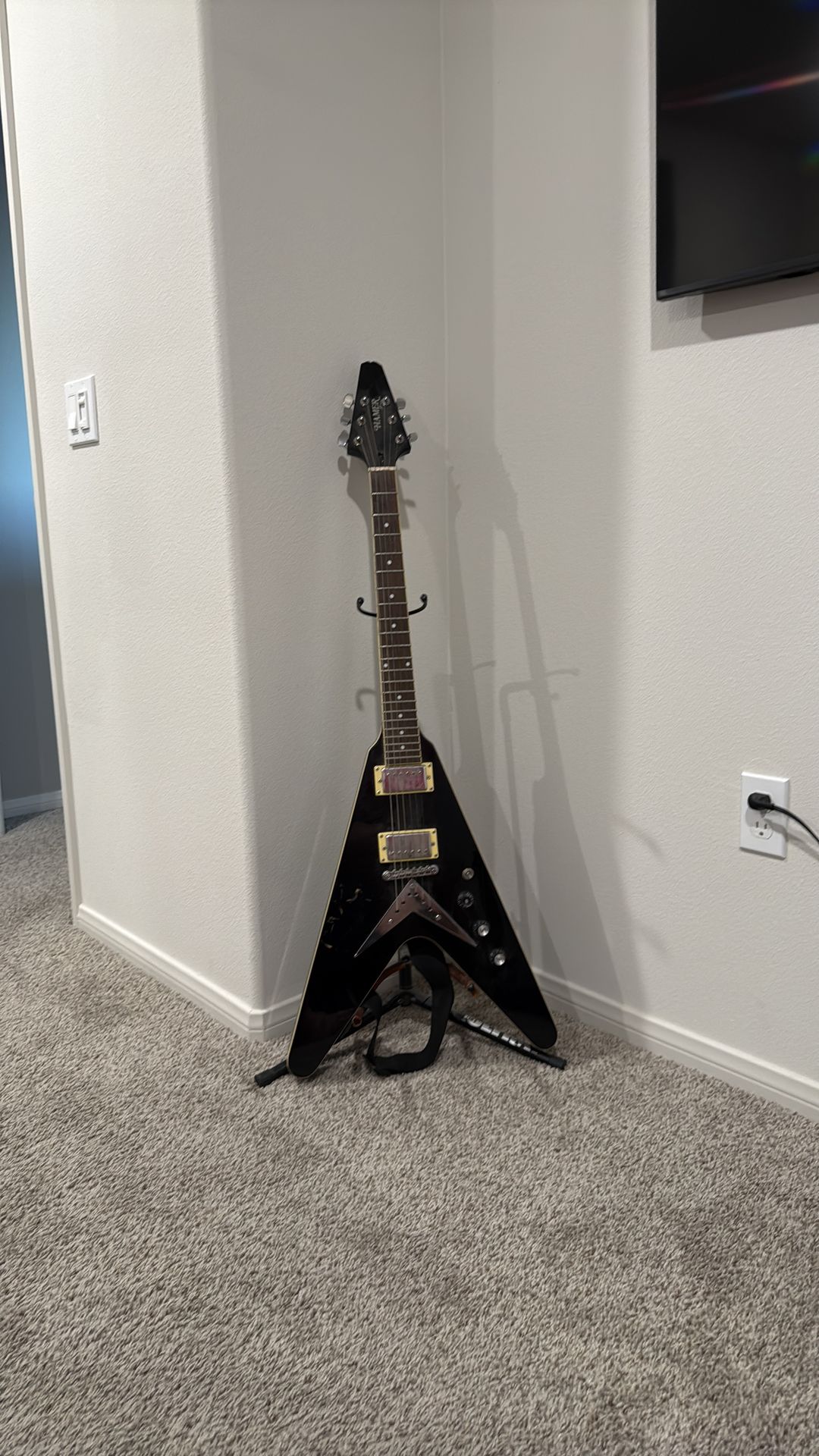 Flying V Electric Guitar With Stand