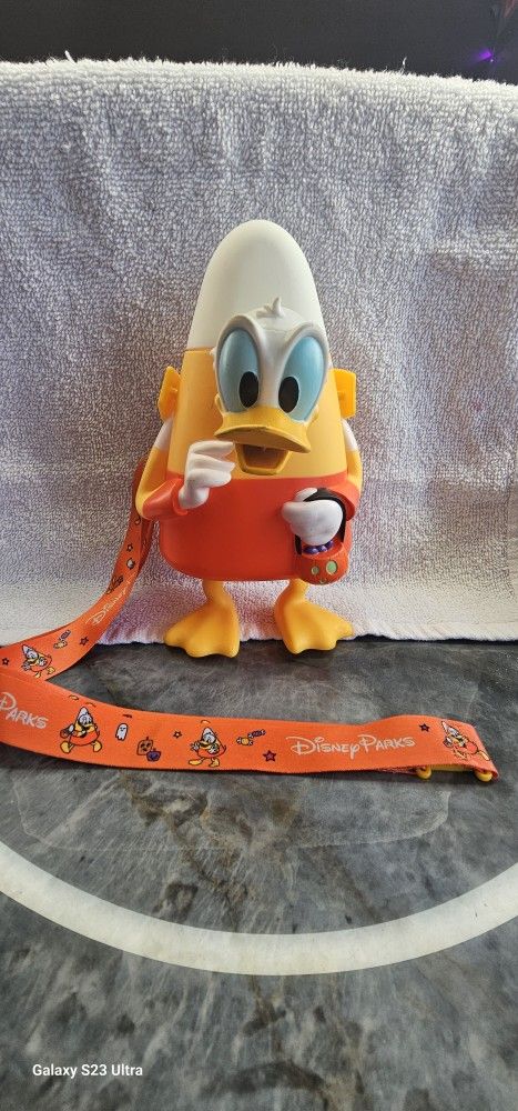 2023 Disney Glow in the Dark Donald Duck Candy Corn Halloween Sipper NEW Disney Donald Duck candy corn sipper with strap & straw. Features vibrant orange and yellow colors. Perfect for Disney fans who need no longer made items.