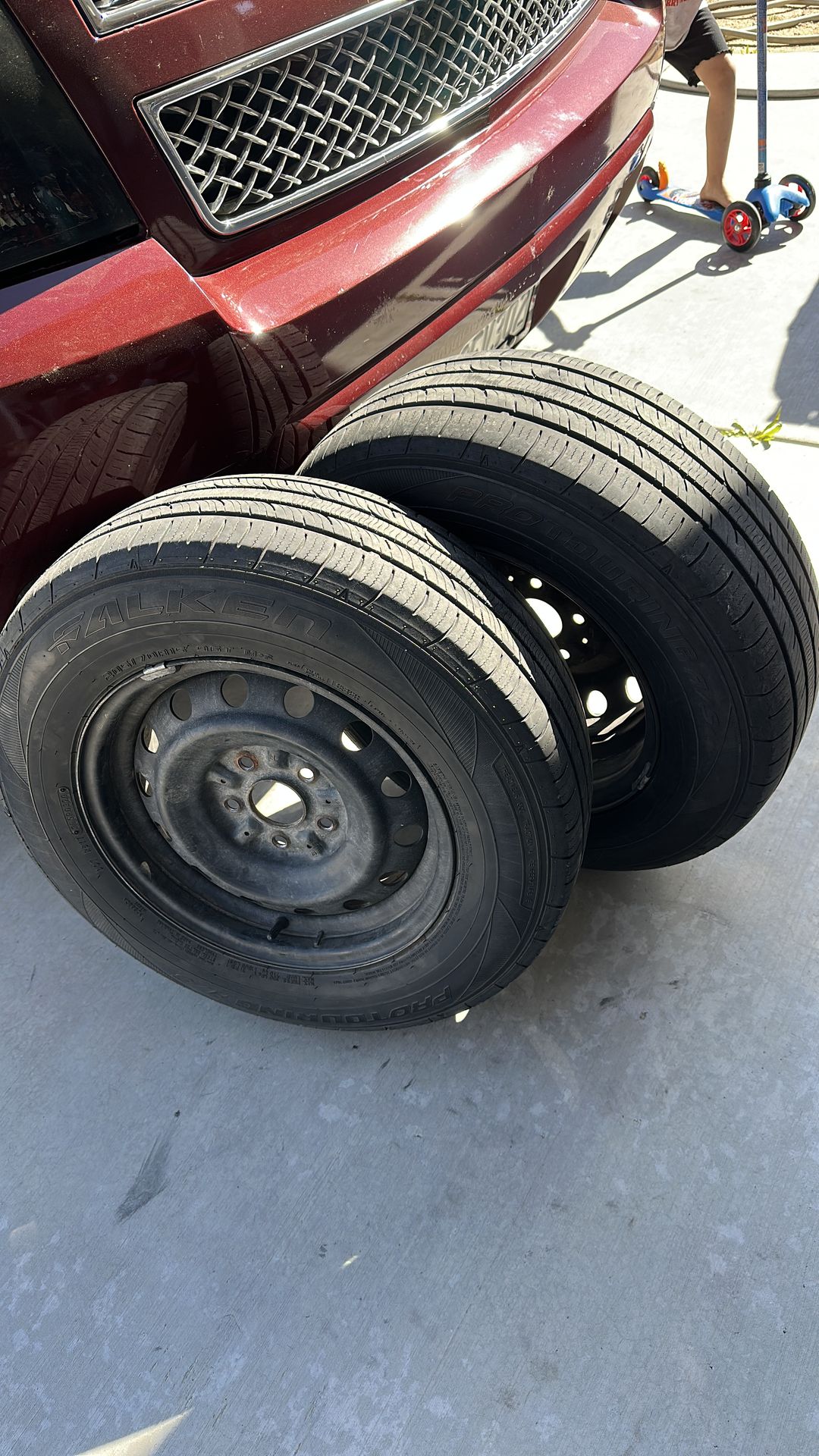 Good used tires and steel wheels, paid $100 for the tires mainly for my 03 Honda, bolt pattern fit except for center for Toyotas