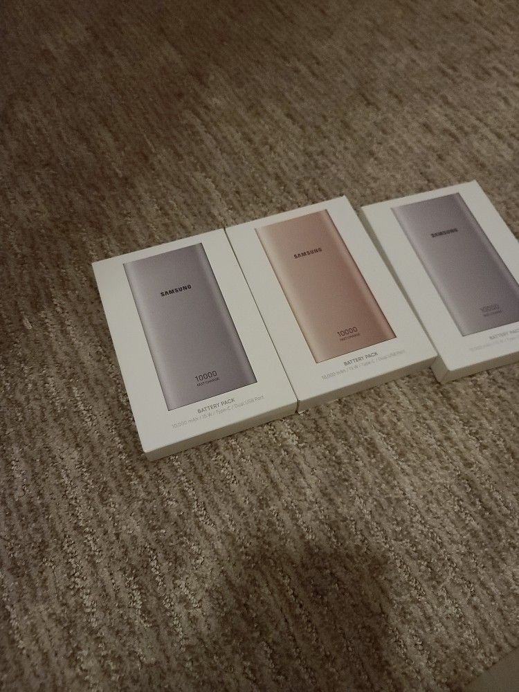New, not openned. $22 each Bought a few of these for a passion electronics build project, but never used. My loss your gain. Paid $50 for each directly from Samsung. All metal body and gives 2-3 full charges. Really good battery. A lot better than standard big heavy chargers.