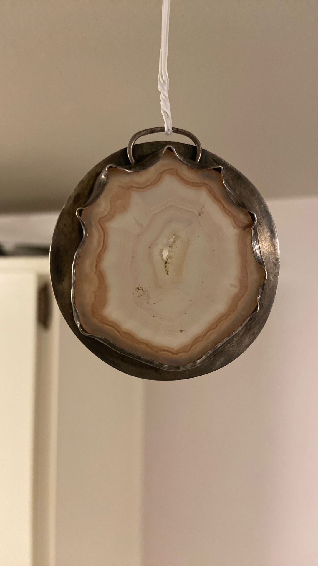 Antique Sliced Agate Section Set In .925 Bezel Pendant