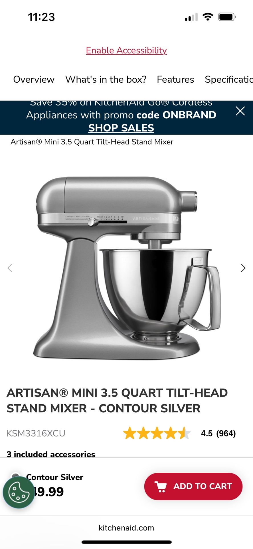 KitchenAid Artisan Mixer Mini 3.5 Qt (like brand new)