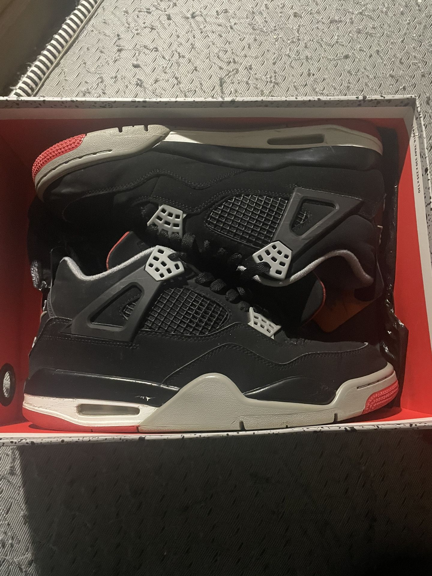 Size 9.5 breds (Authentic🤝) All condition on shoes is shown in the pictures has been used but still good Any questions lmk (give me offers)