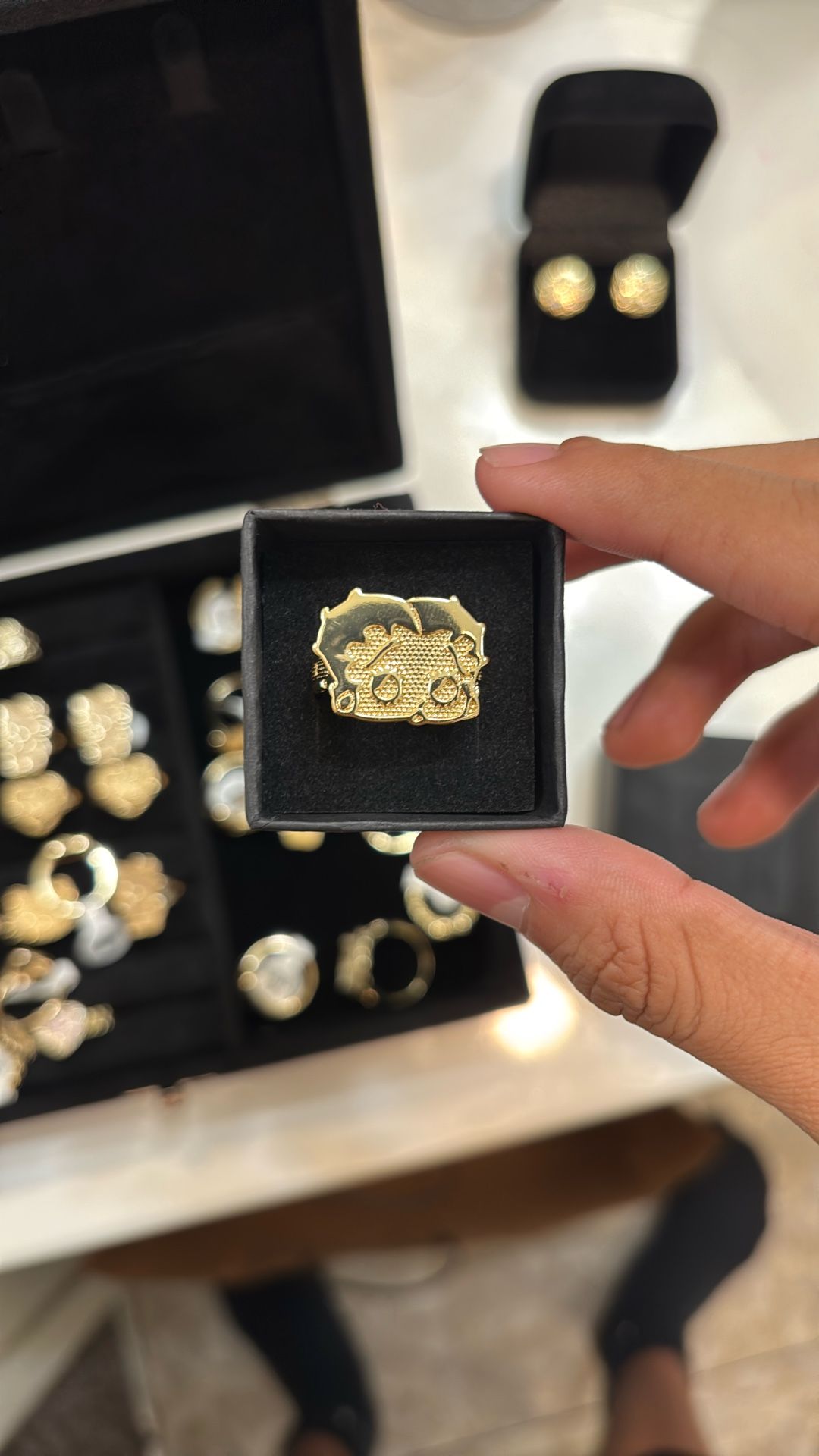 Gold Filled Betty Boop Ring 🔌 • Dipped 5 times in gold for enhanced shine and durability • Water resistant, sweat resistant, & nickel free • Smooth, polished finish • Ideal for everyday wear or layering