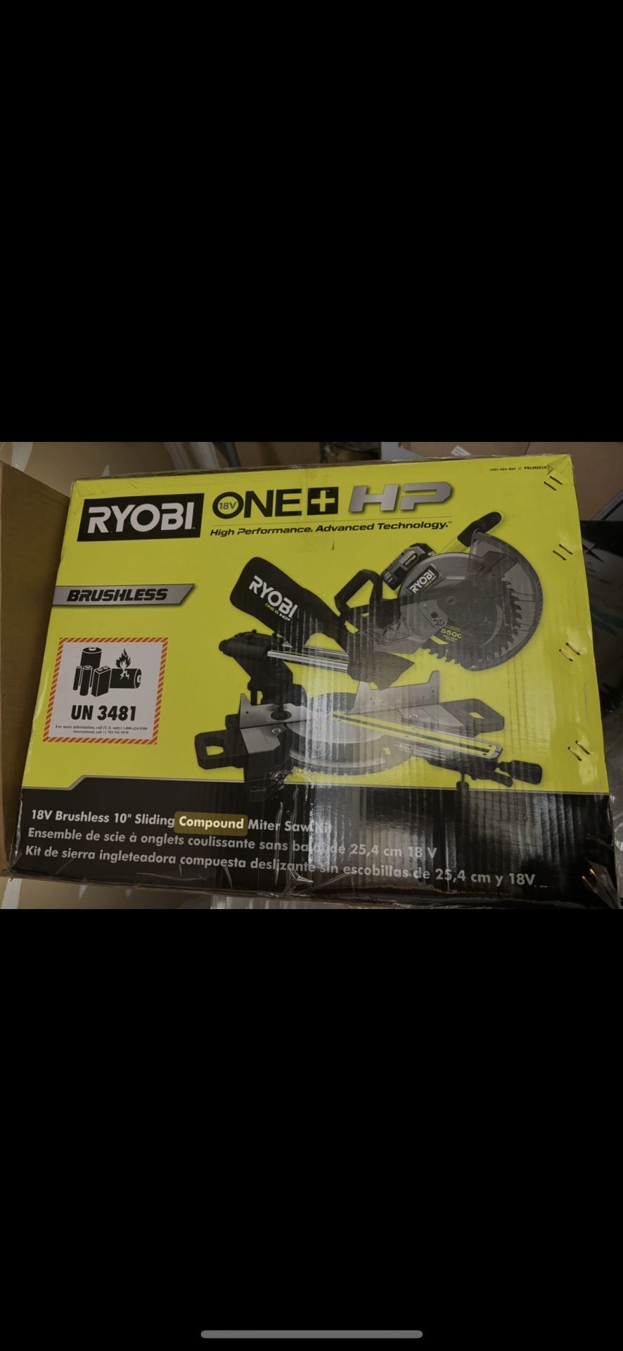 Selling a brand-new RYOBI ONE+ HP 18V Brushless 10″ Sliding Compound Miter Saw Kit. The box is unopened and brand new. This high-performance cordless saw delivers powerful cutting capability with the convenience of the RYOBI ONE+ battery platform.