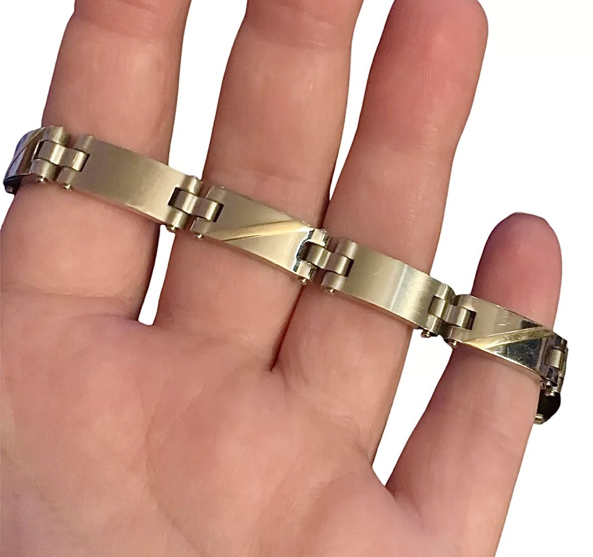 14k Yellow Gold & Stainless Steal Mens Wide Link Bracelet 23 cm/ 9"