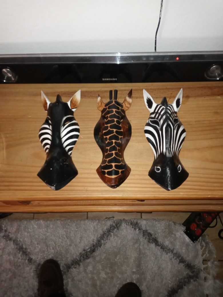 Wall art. 2 zebras and a giraffe. all 3 for 20.00