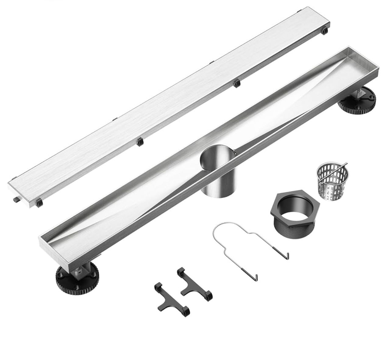 HTOH 28-Inch Linear Shower Drain- with 2-in-1 Flat & Tile Insert Cover, Brushed 304 Stainless Steel Rectangle Shower Floor Drain,Floor Shower Drain with Adjustable Leveling Feet, Hair Strainer