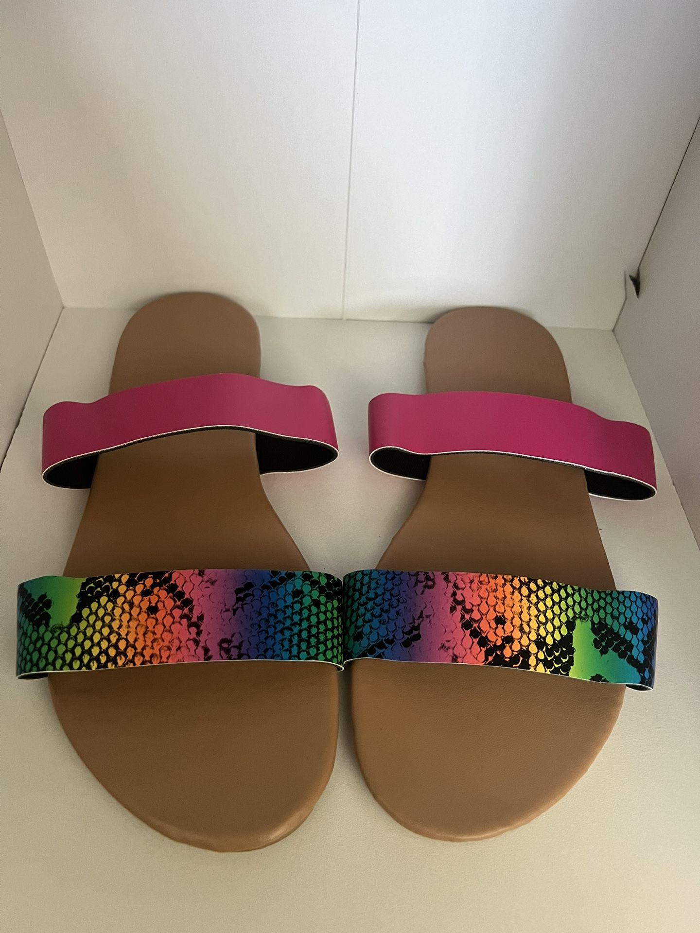 Hot Pink Snake Skin Rainbow Print Slide On Sandals