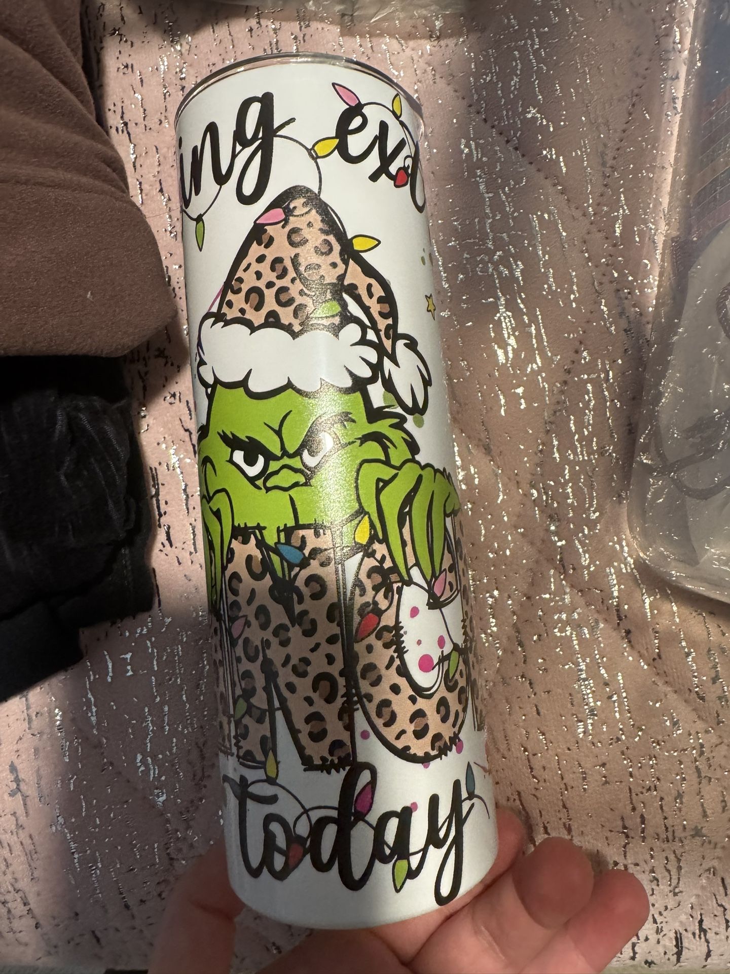 New Grinch Christmas Leopard Tumbler Cup With Metal Straw