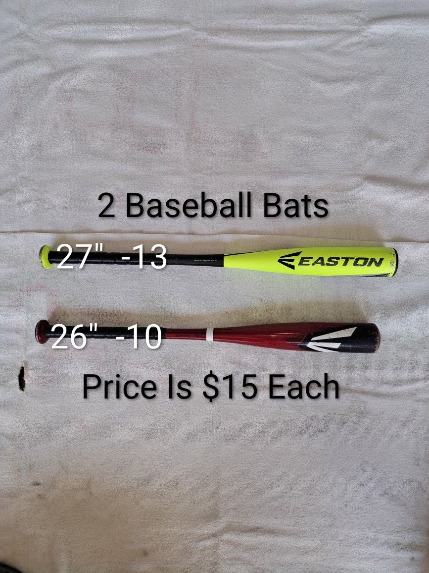 2 Baseball Bats Of Different Sizes (Price Is $15 Each)