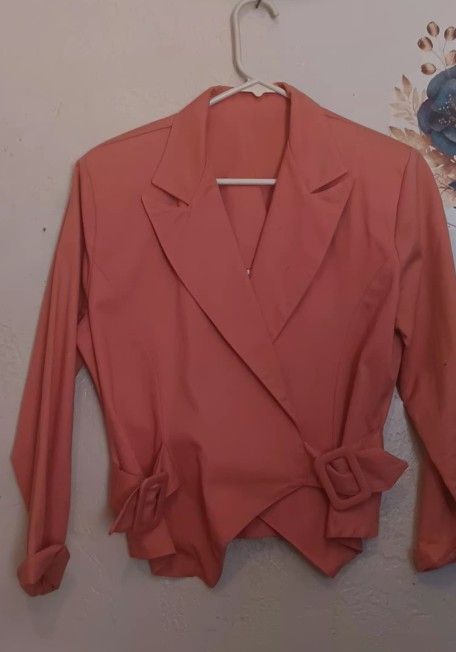 Frederick's of hollywood brand beautifully tailored, fitted, with padded shoulders and buckles on the side. business or casual jacket. pictures don't do this justice sz small