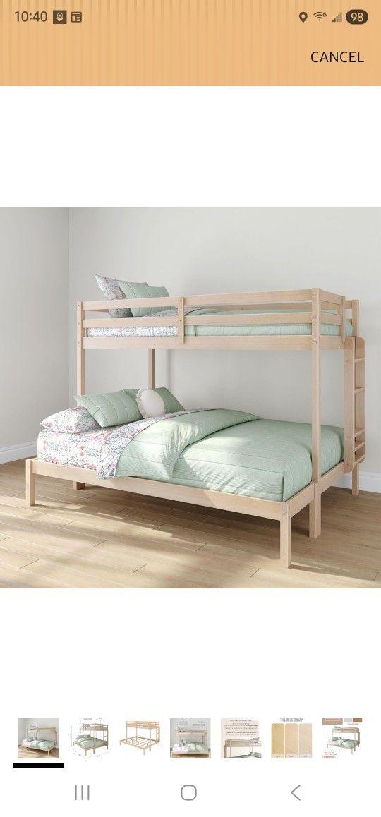 Grain & Grove Bear Twin XL Over Queen Bunk Bed, Sturdy Bunk Bed Frame for Kids, Plywood Bunk with Ladder, Guardrail, and Slats, No Box Spring Required